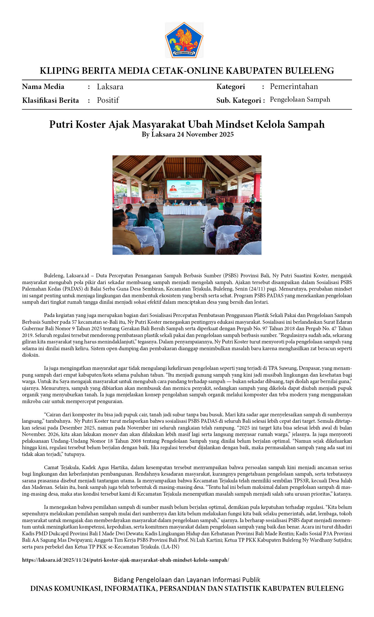 Putri Koster Ajak Masyarakat Ubah Mindset Kelola Sampah