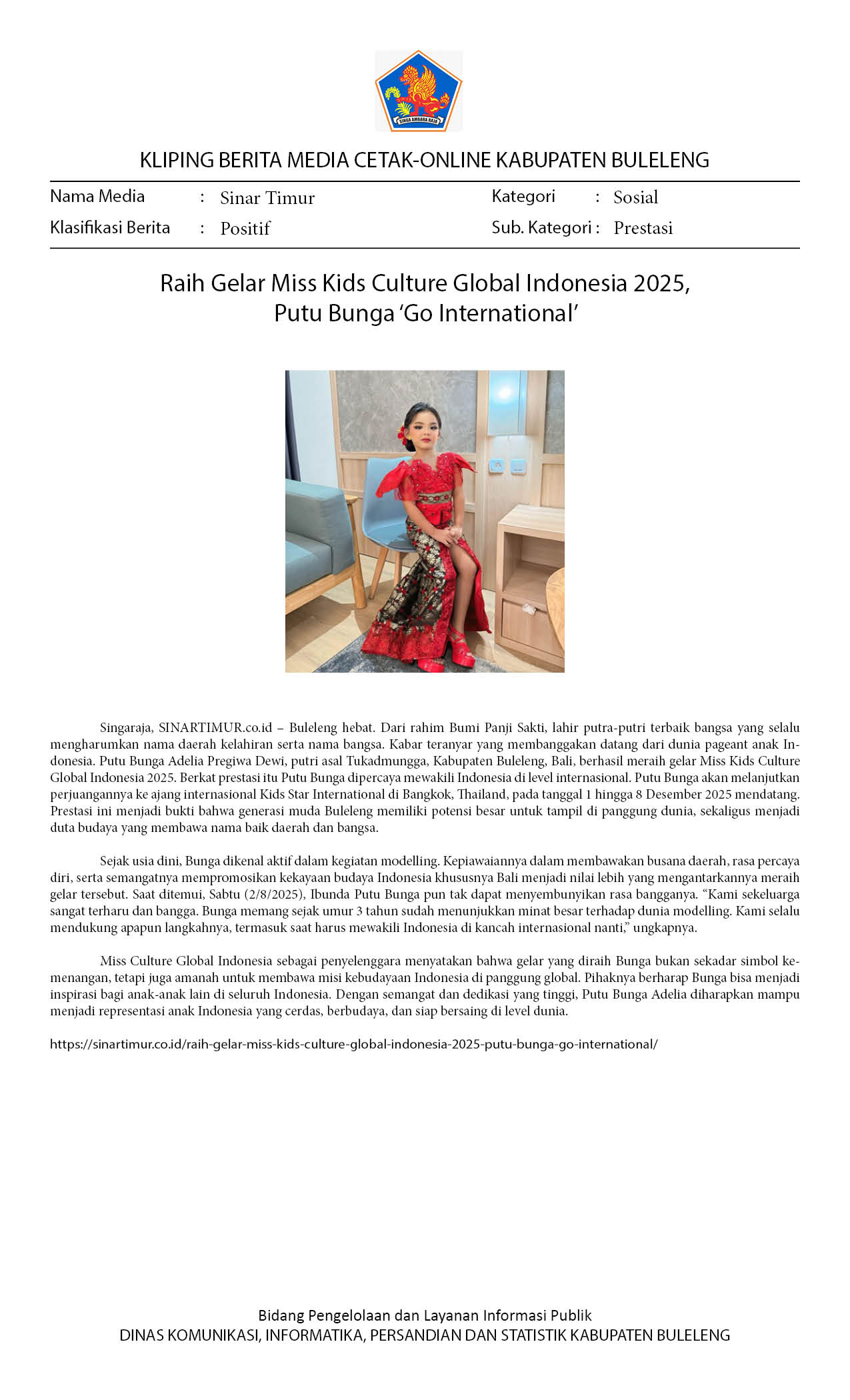 Raih Gelar Miss Kids Culture Global Indonesia 2025, Putu Bunga ‘Go International’