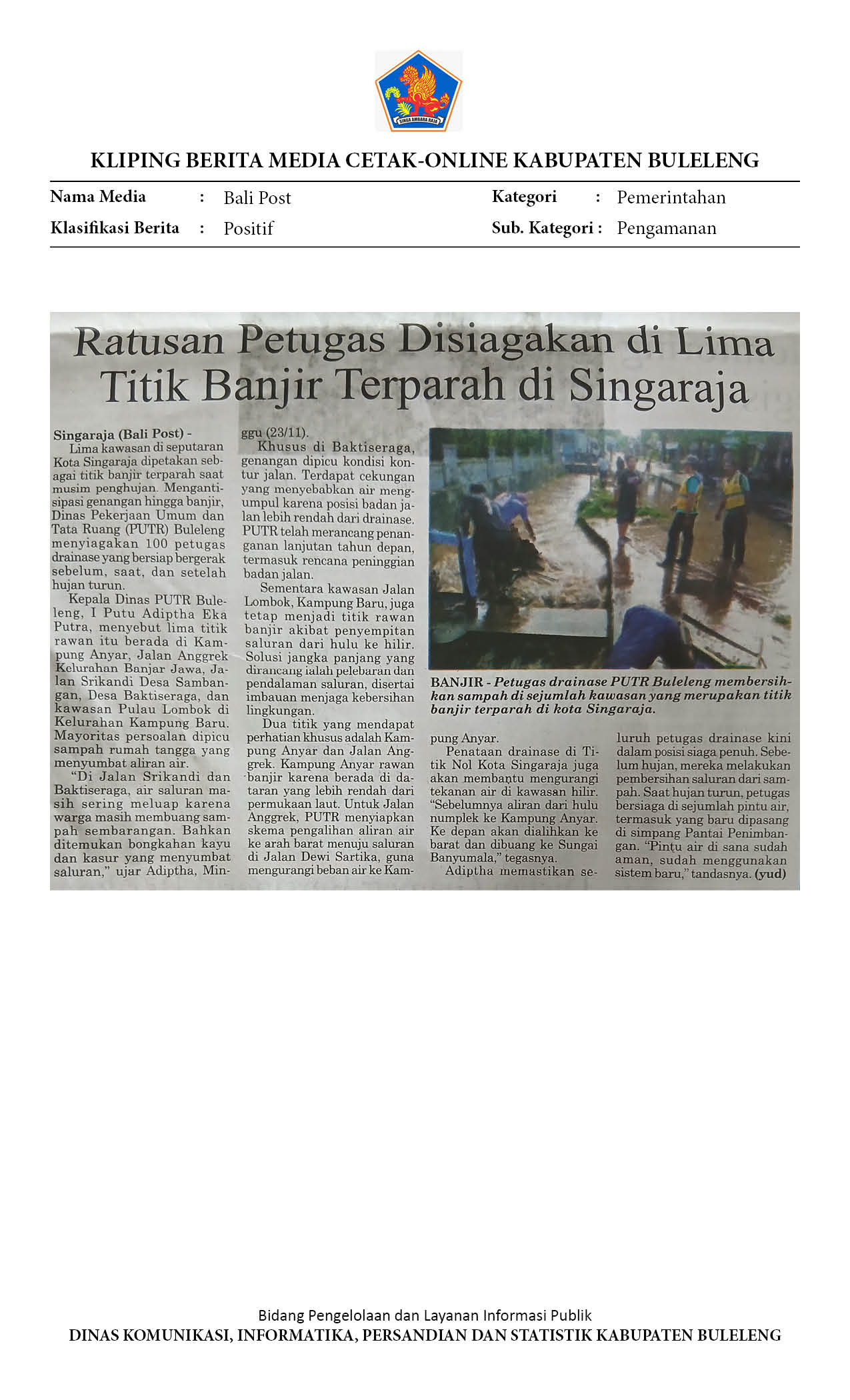 RATUSAN PETUGAS DISIAGAKAN DI LIMA TITIK BANJIR TERPARAH DI SINGARAJA