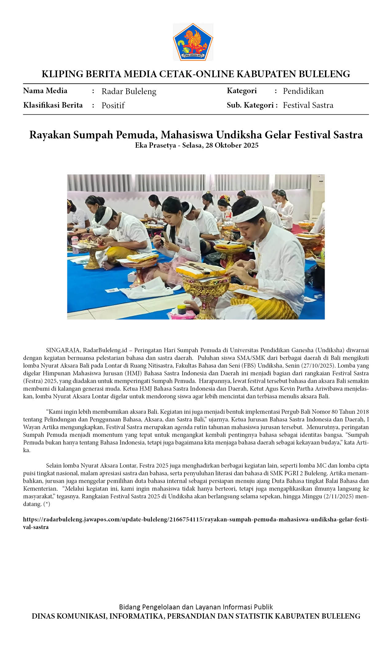 RAYAKAN SUMPAH PEMUDA, MAHASISWA UNDIKSHA GELAR FESTIVAL SASTRA