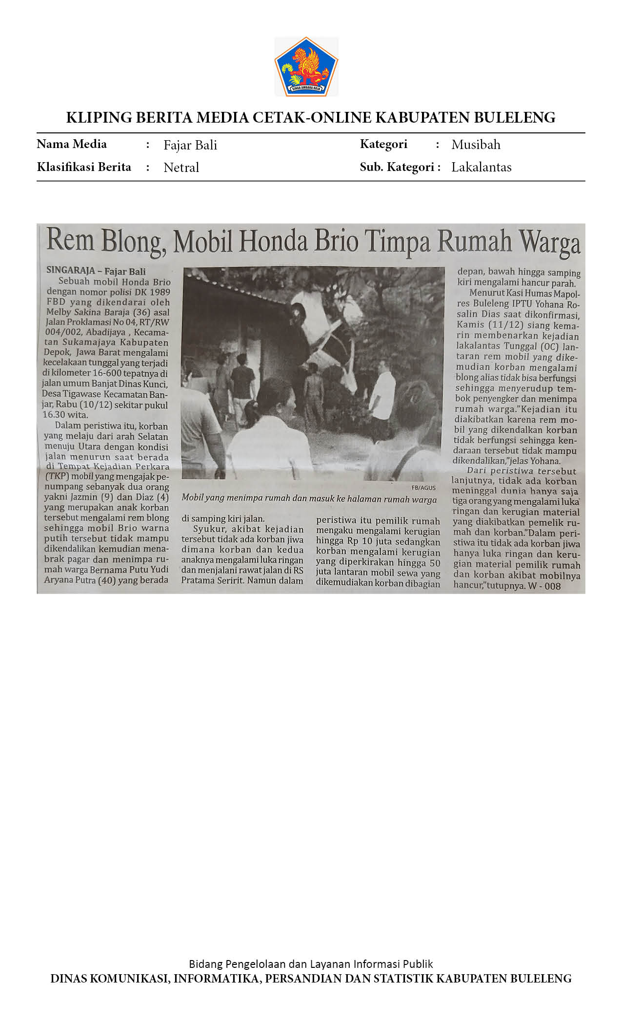 REM BLONG, MOBIL HONDA BRIO TIMPA RUMAH WARGA