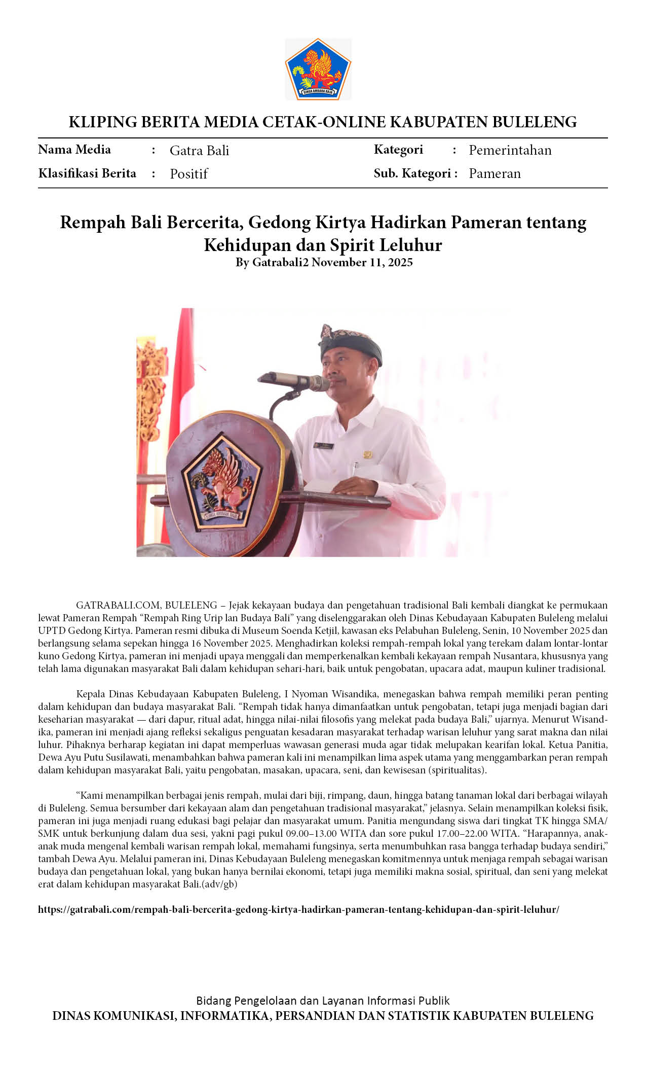 REMPAH BALI BERCERITA, GEDONG KIRTYA HADIRKAN PAMERAN TENTANG KEHIDUPAN DAN SPIRIT LELUHUR