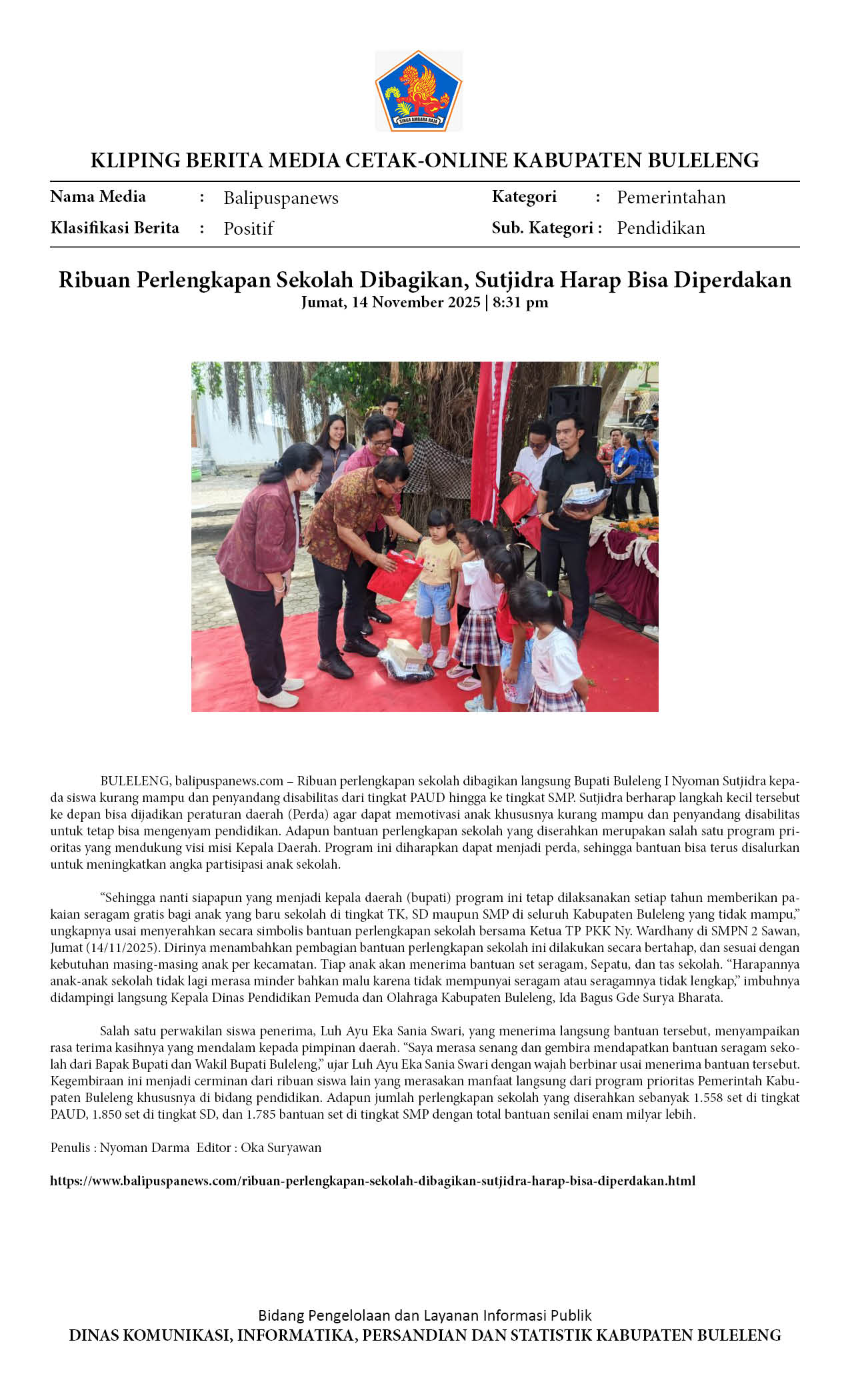 Ribuan Perlengkapan Sekolah Dibagikan, Sutjidra Harap Bisa Diperdakan