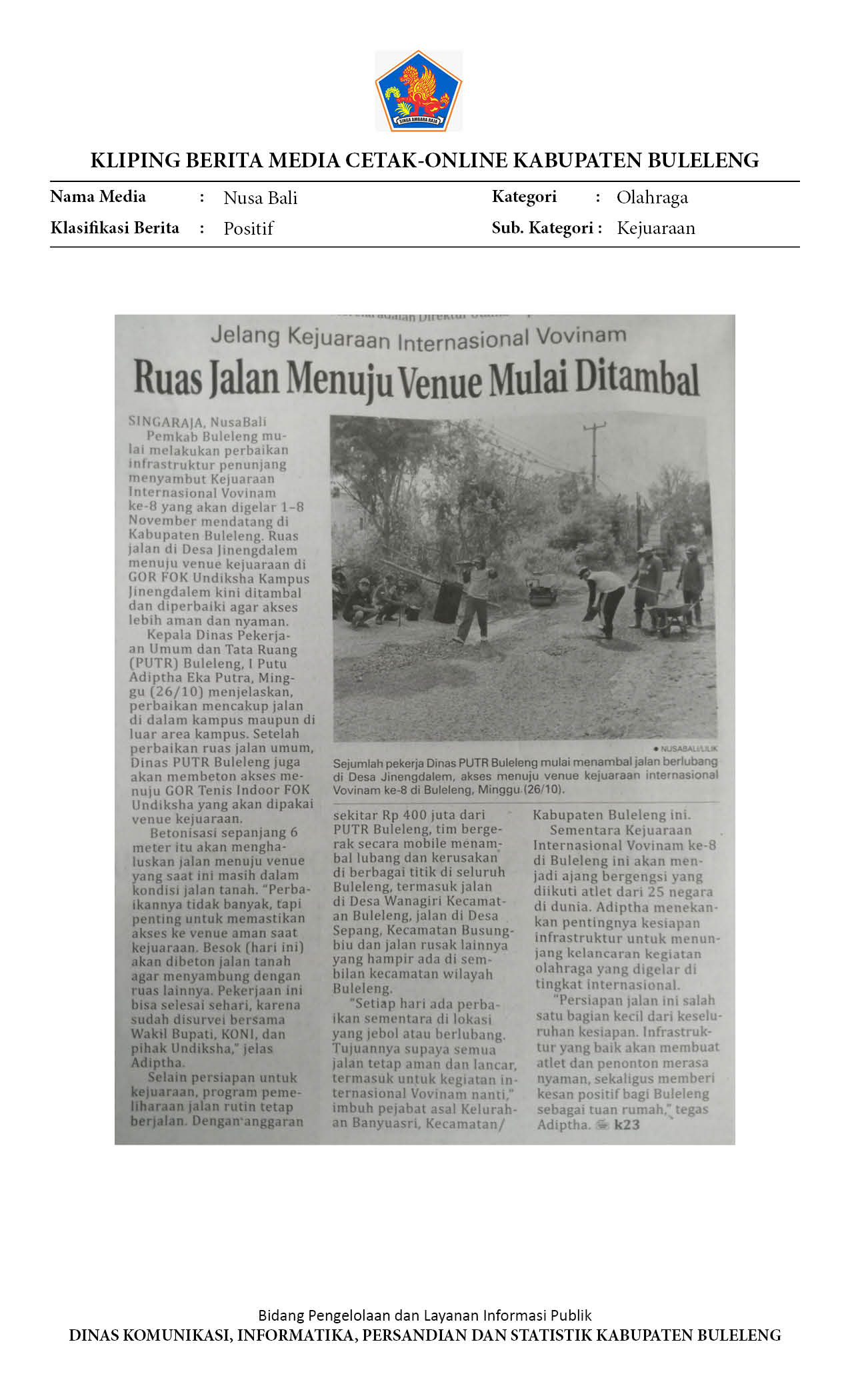 Ruas Jalan Menuju Venue Mulai Ditambal