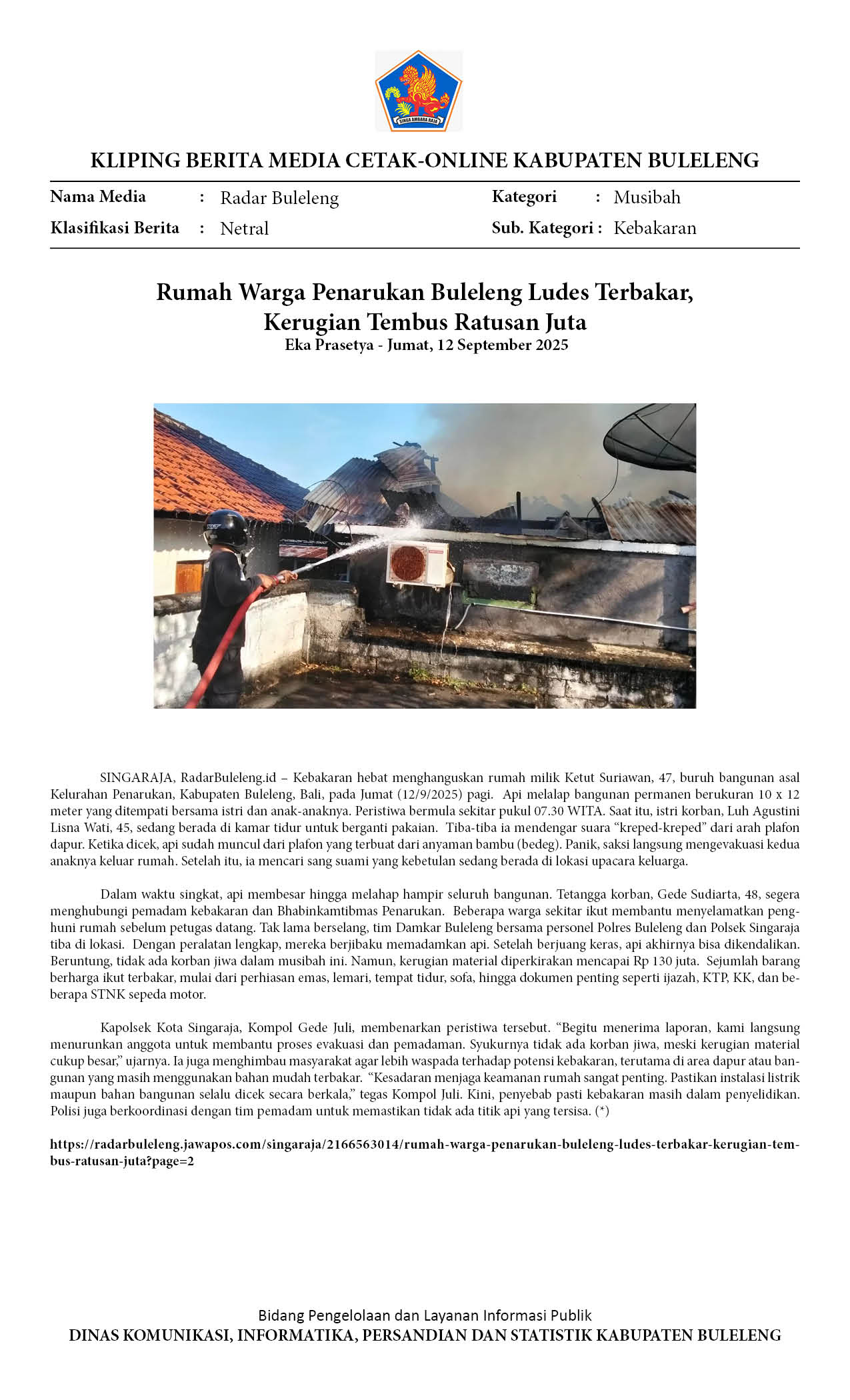 RUMAH WARGA PENARUKAN BULELENG LUDES TERBAKAR, KERUGIAN TEMBUS RATUSAN JUTA