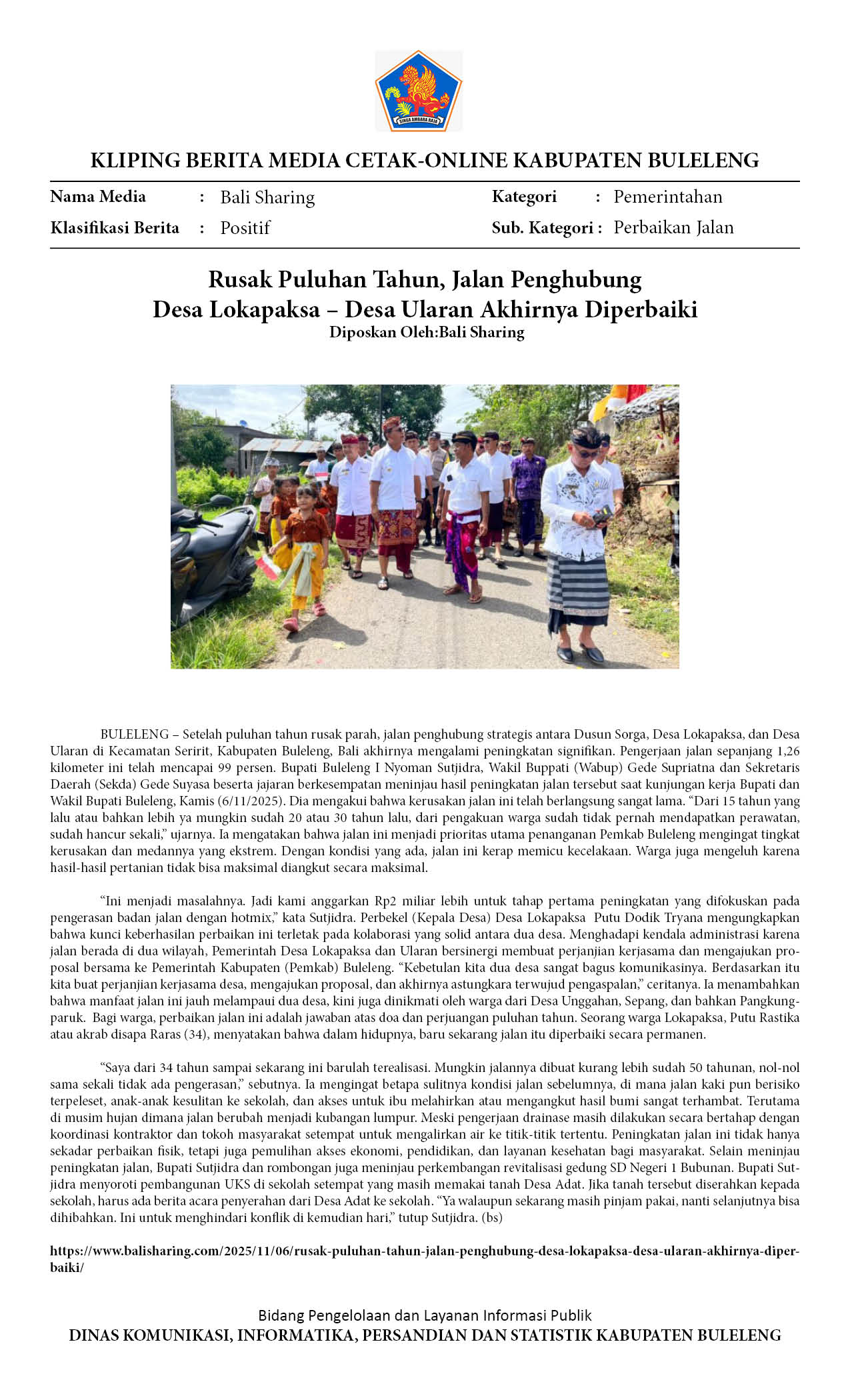 RUSAK PULUHAN TAHUN, JALAN PENGHUBUNG DESA LOKAPAKSA – DESA ULARAN AKHIRNYA DIPERBAIKI