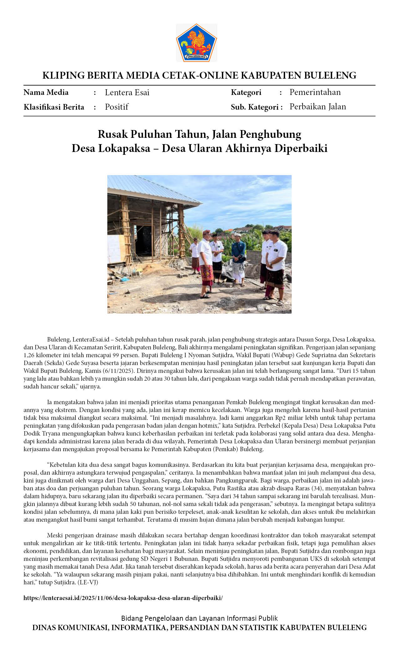 RUSAK PULUHAN TAHUN, JALAN PENGHUBUNG DESA LOKAPAKSA – DESA ULARAN AKHIRNYA DIPERBAIKI
