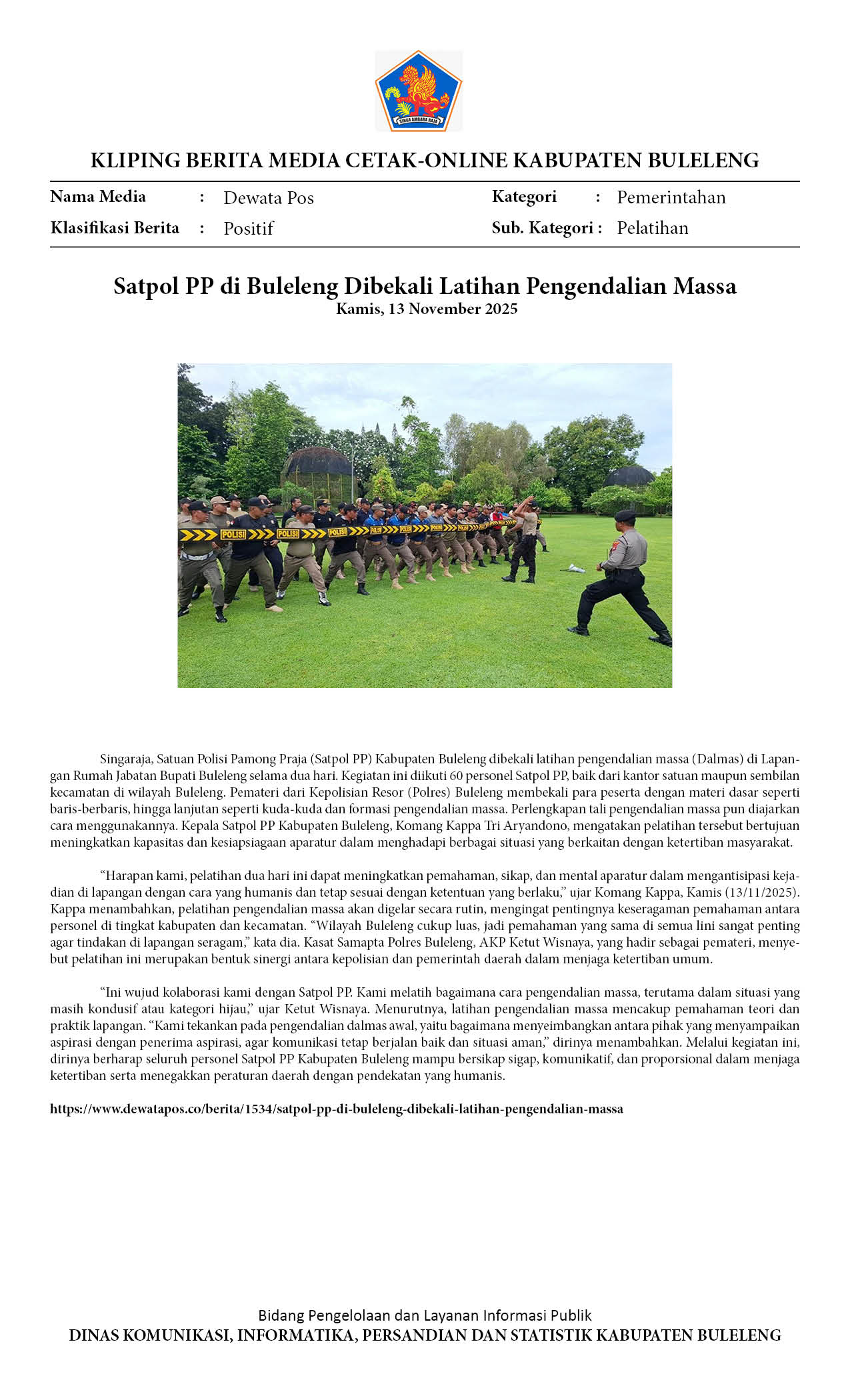 SATPOL PP DI BULELENG DIBEKALI LATIHAN PENGENDALIAN MASSA