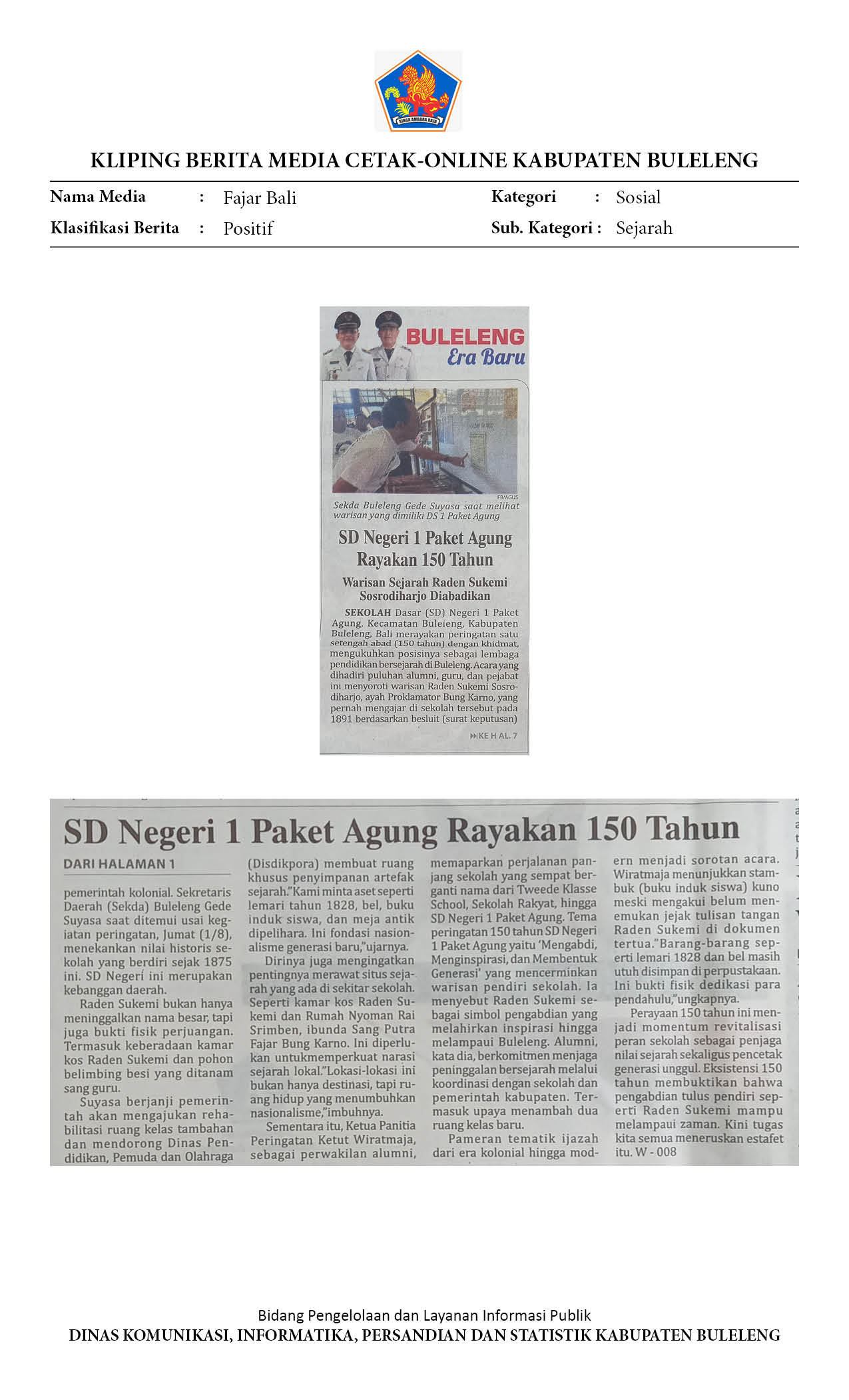 SD NEGERI 1 PAKET AGUNG RAYAKAN 150 TAHUN