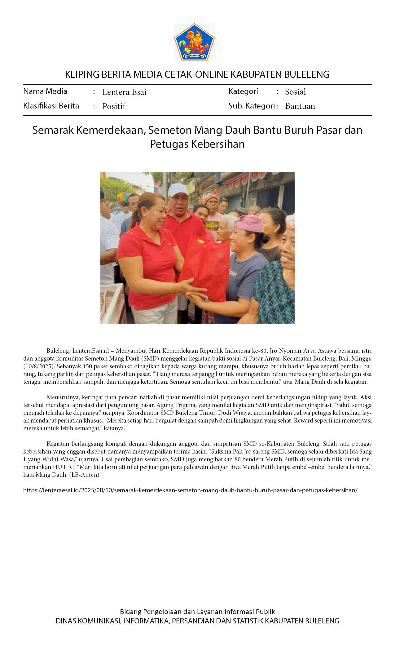 Semarak Kemerdekaan, Semeton Mang Dauh Bantu Buruh Pasar dan Petugas Kebersihan