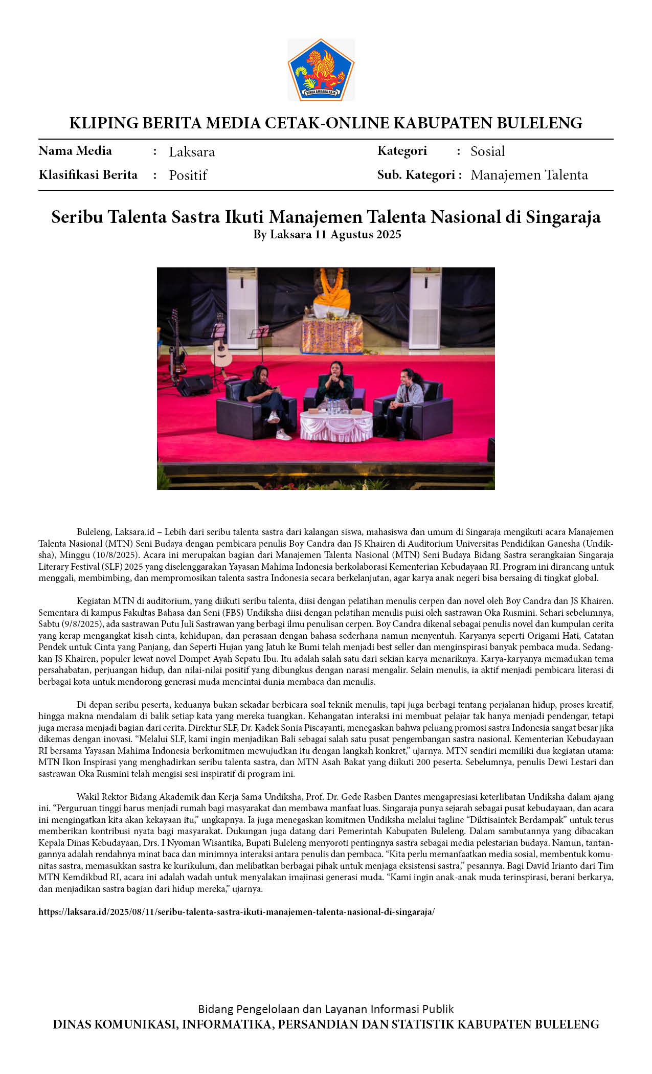 SERIBU TALENTA SASTRA IKUTI MANAJEMEN TALENTA NASIONAL DI SINGARAJA