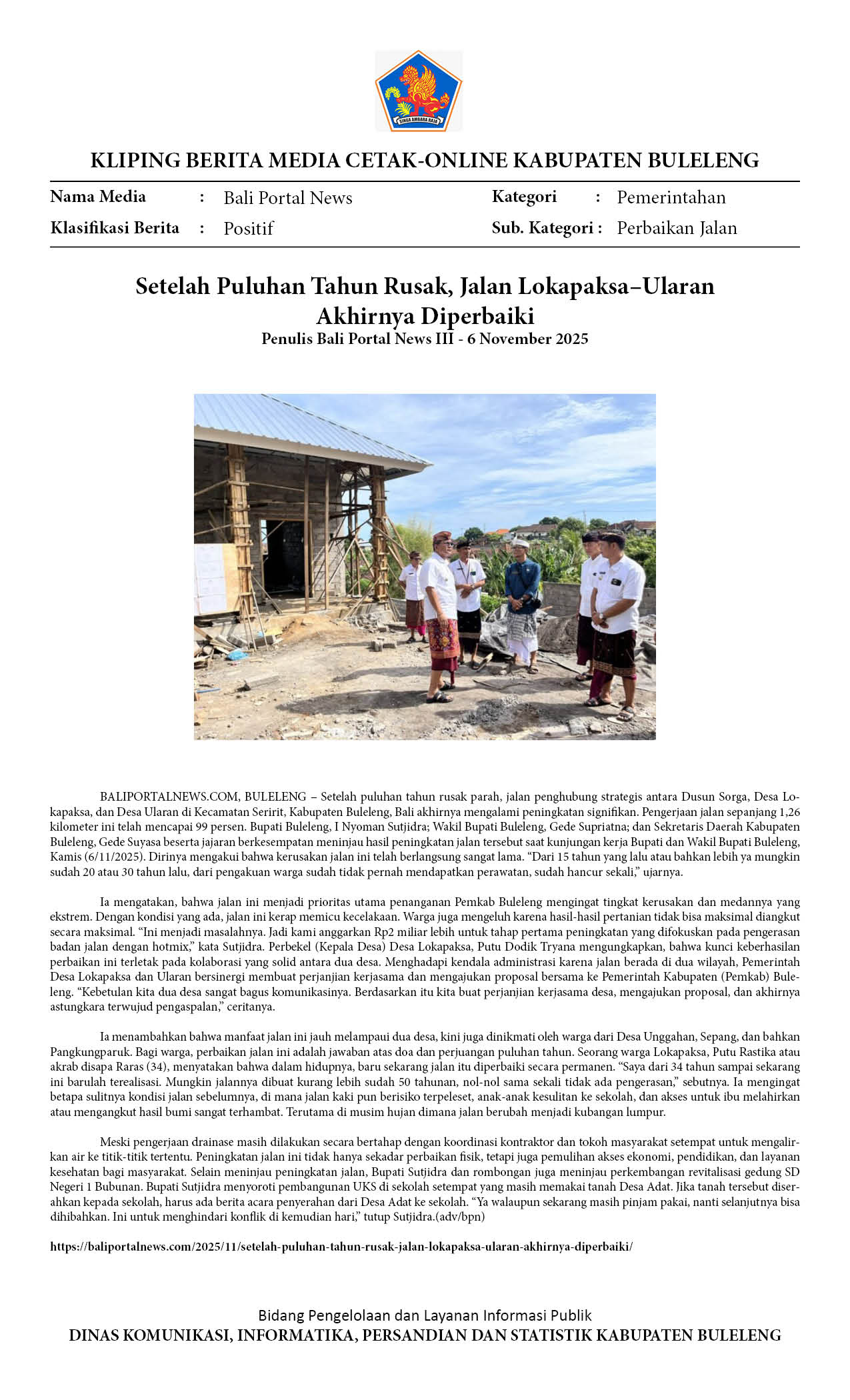 SETELAH PULUHAN TAHUN RUSAK, JALAN LOKAPAKSA–ULARAN AKHIRNYA DIPERBAIKI