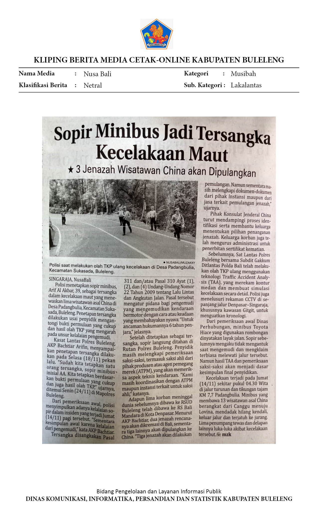 SOPIR MINIBUS JADI TERSANGKA KECELAKAAN MAUT