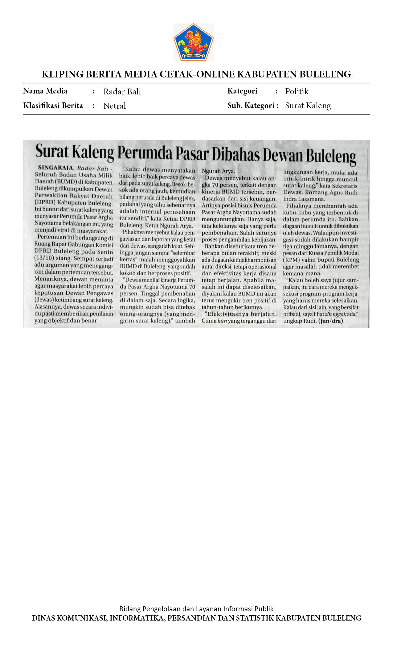 SURAT KALENG PERUMDA PASAR DIBAHAS DEWAN BULELENG