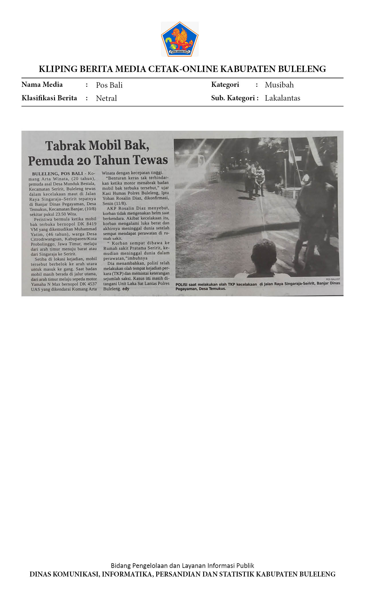 TABRAK MOBIL BAK, PEMUDA 20 TAHUN TEWAS