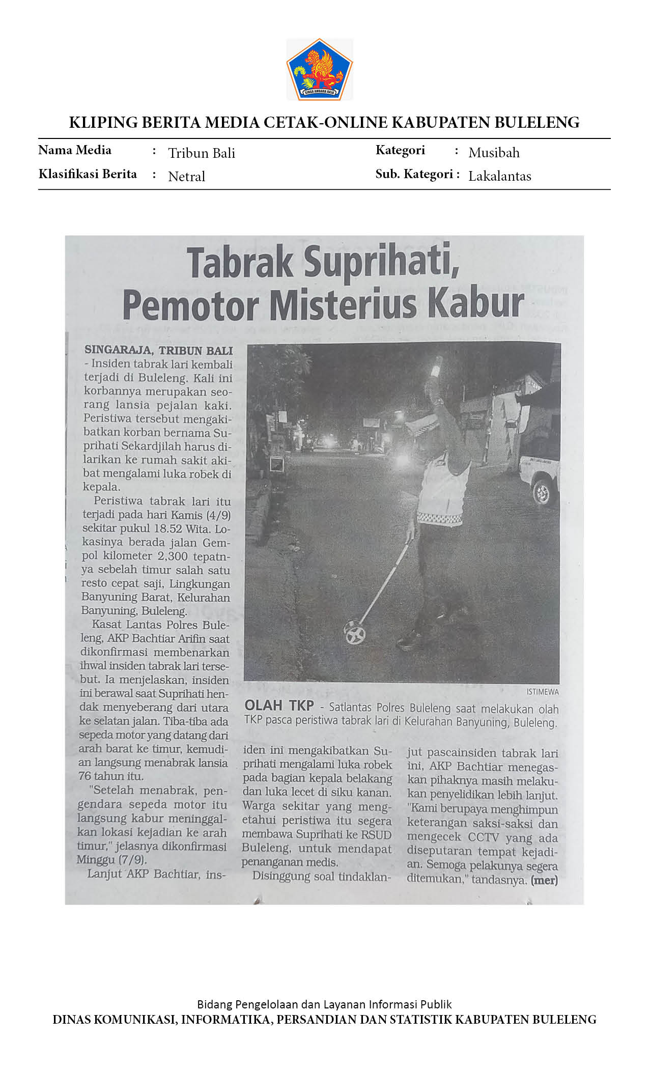 TABRAK SUPRIHATI PEMOTOR MISTERIUS KABUR