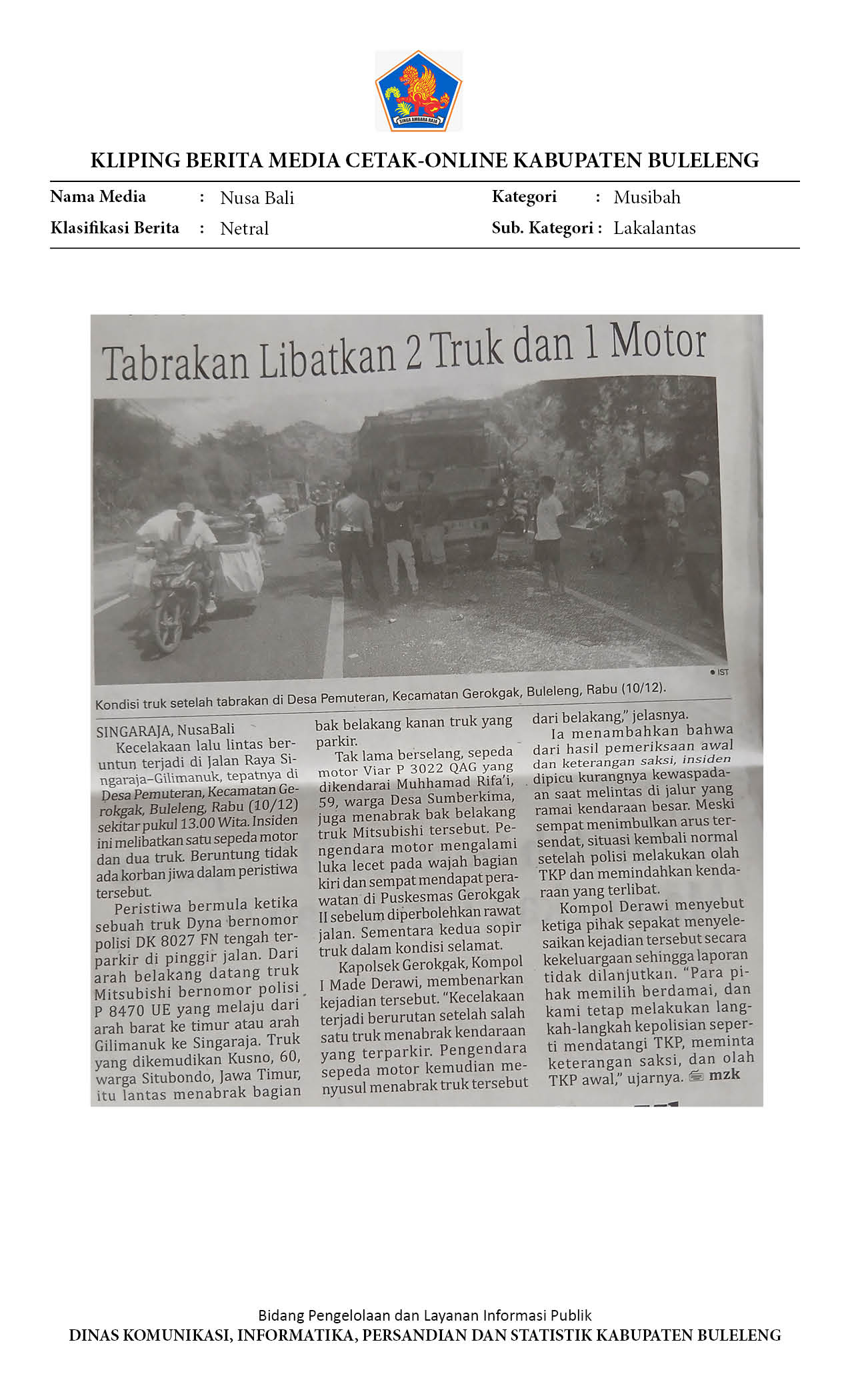 TABRAKAN LIBATKAN 2 TRUK DAN 1 MOTOR