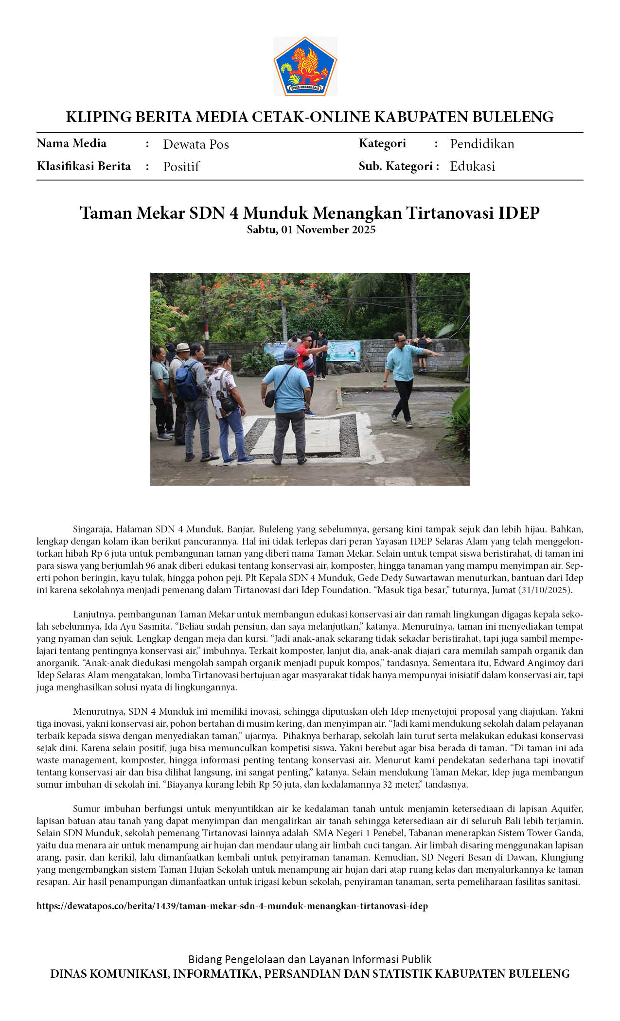 Taman Mekar SDN 4 Munduk Menangkan Tirtanovasi IDEP