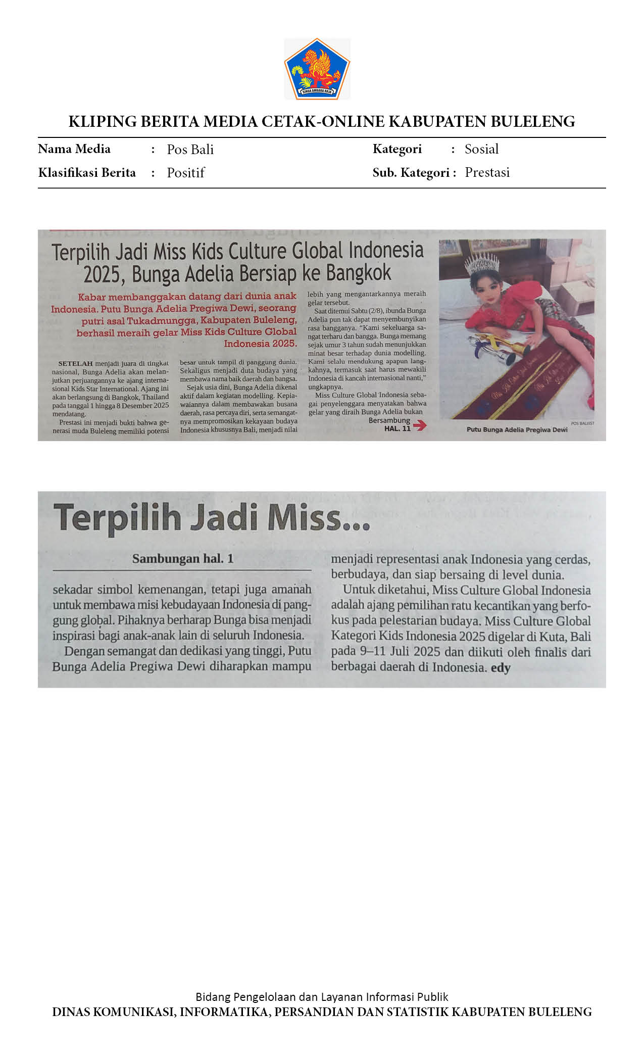 TERPILIH JADI MISS KIDS CULTURE GLOBAL INDONESIA 2025, BUNGA ADELIA BERSIAP KE BANGKOK