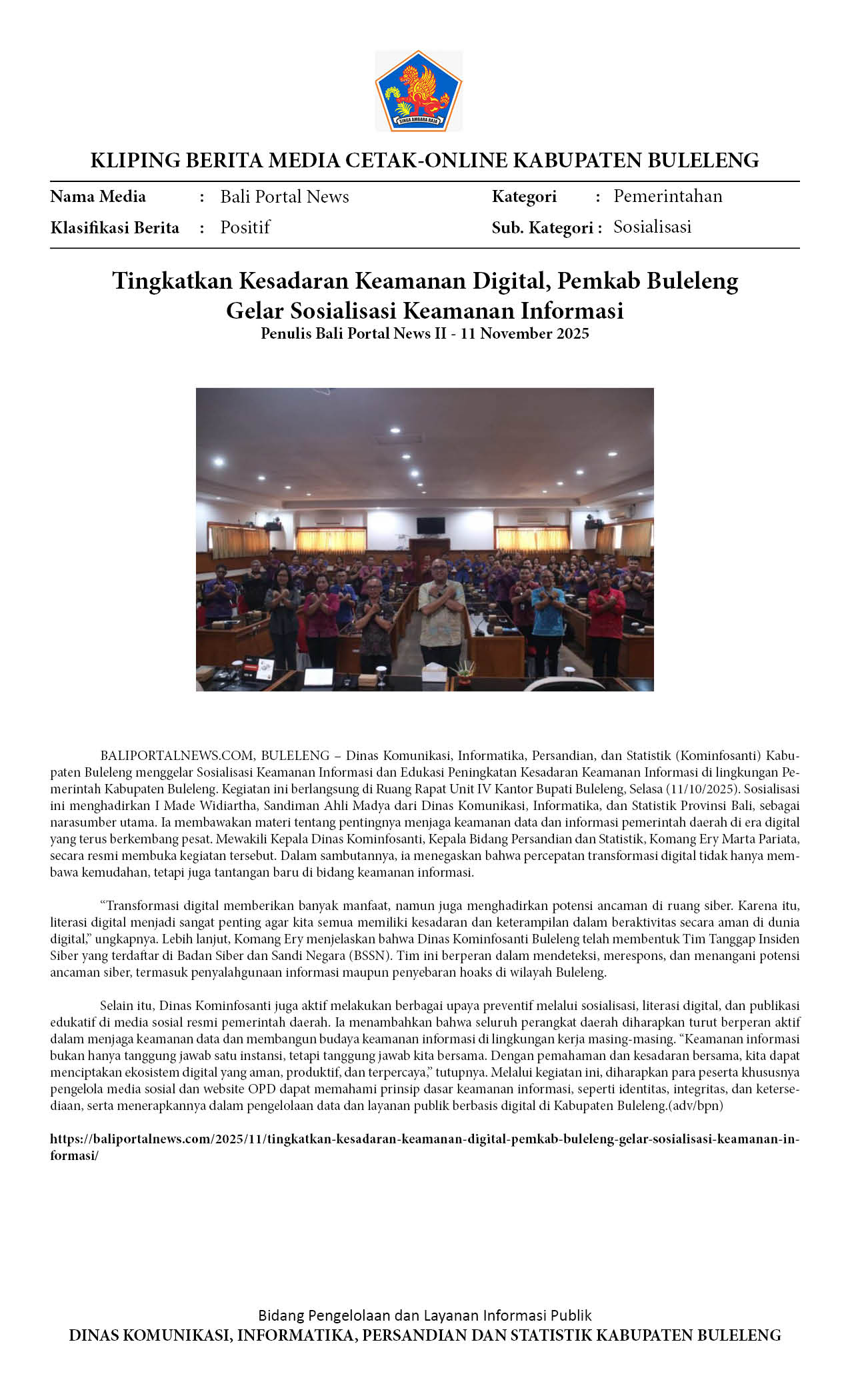 Tingkatkan Kesadaran Keamanan Digital, Pemkab Buleleng Gelar Sosialisasi Keamanan Informasi