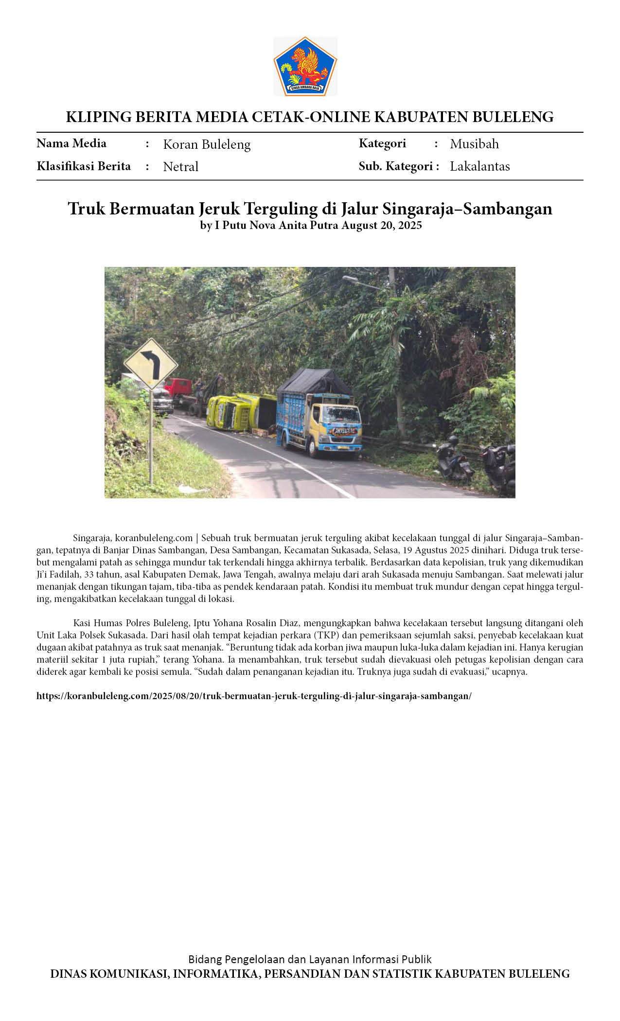 TRUK BERMUATAN JERUK TERGULING DI JALUR SINGARAJA–SAMBANGAN