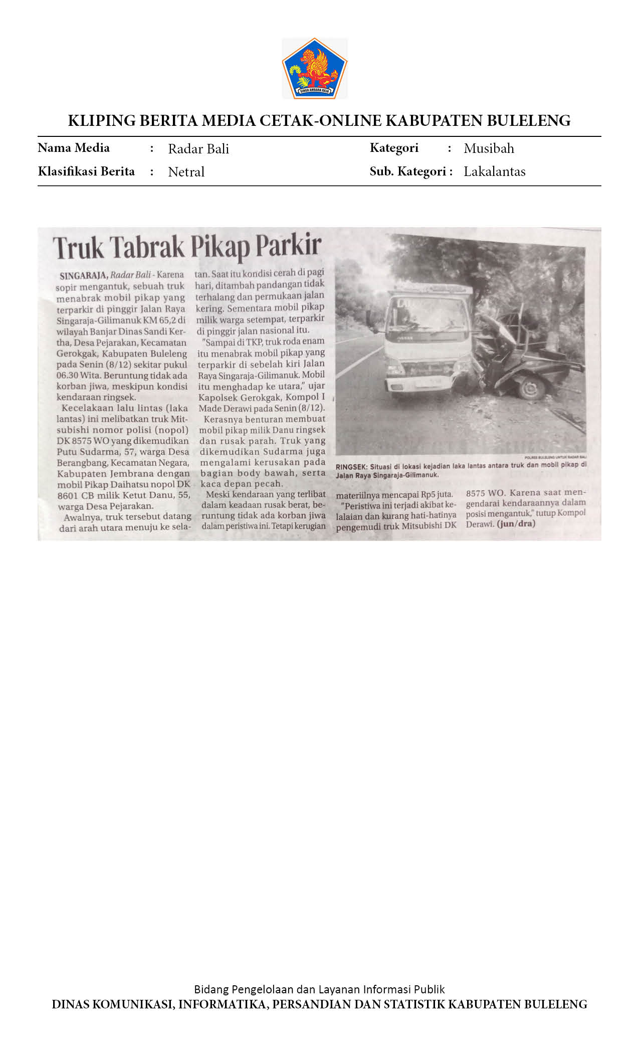 TRUK TABRAK PIKAP PARKIR