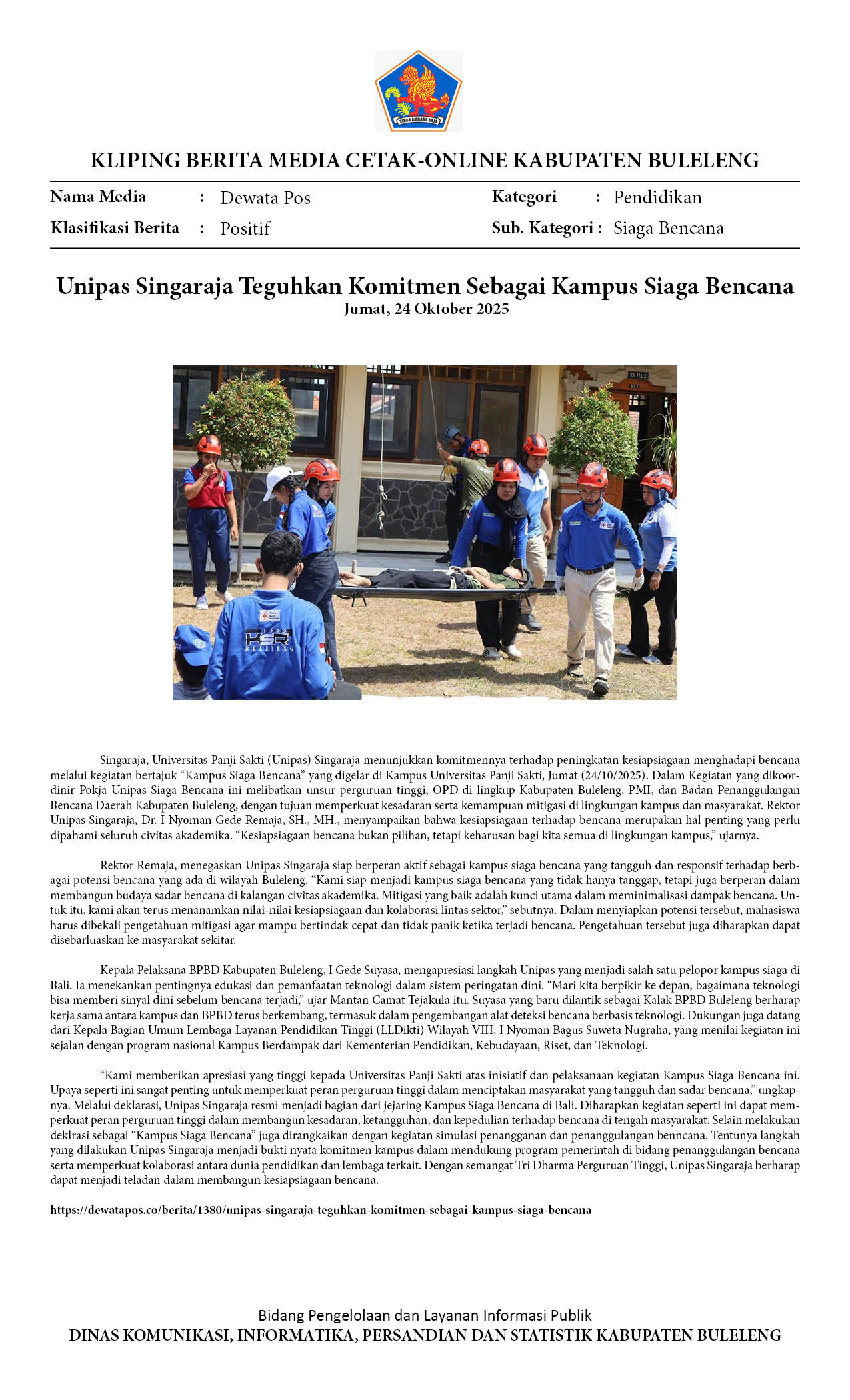 UNIPAS SINGARAJA TEGUHKAN KOMITMEN SEBAGAI KAMPUS SIAGA BENCANA