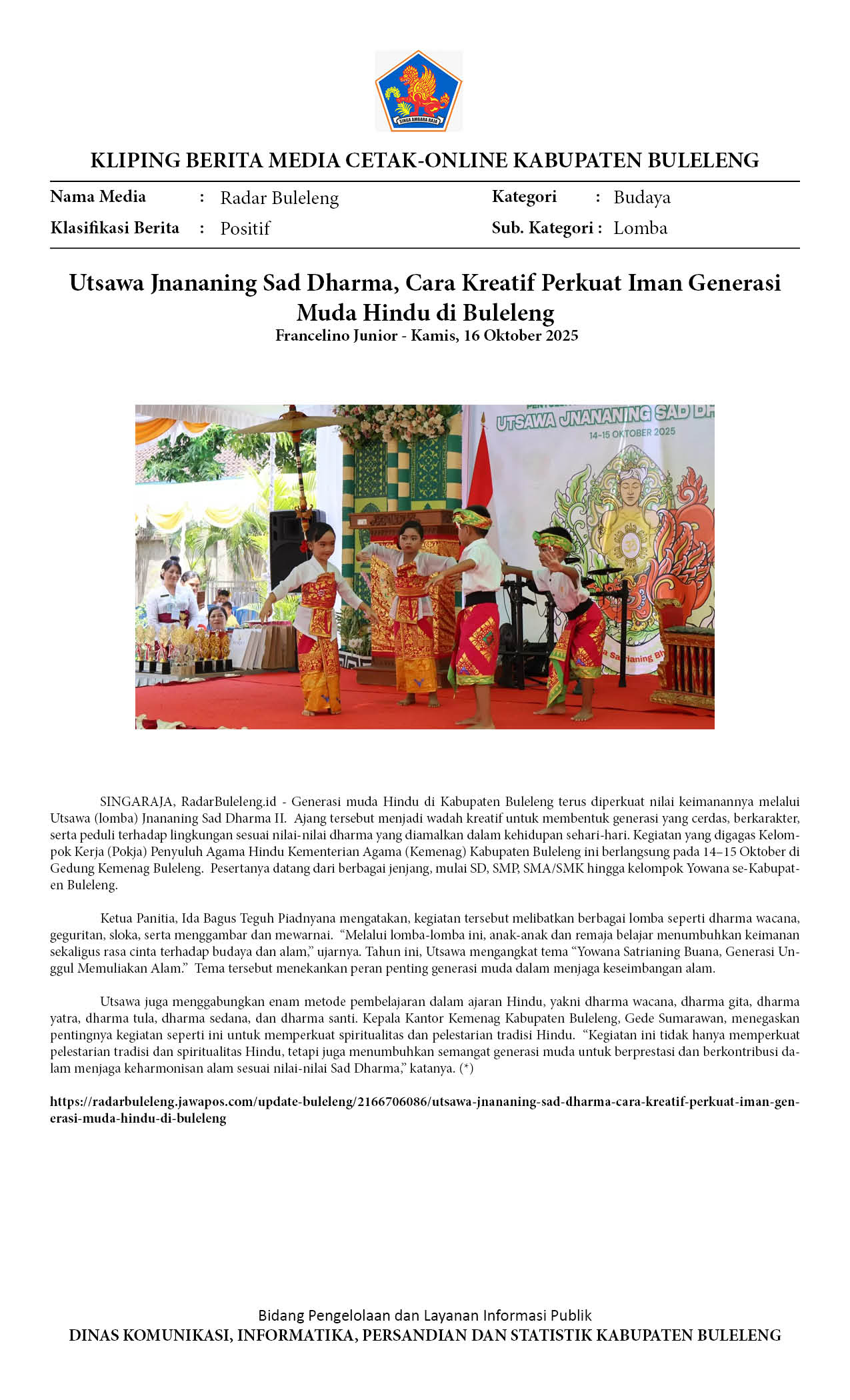 UTSAWA JNANANING SAD DHARMA, CARA KREATIF PERKUAT IMAN GENERASI MUDA HINDU DI BULELENG