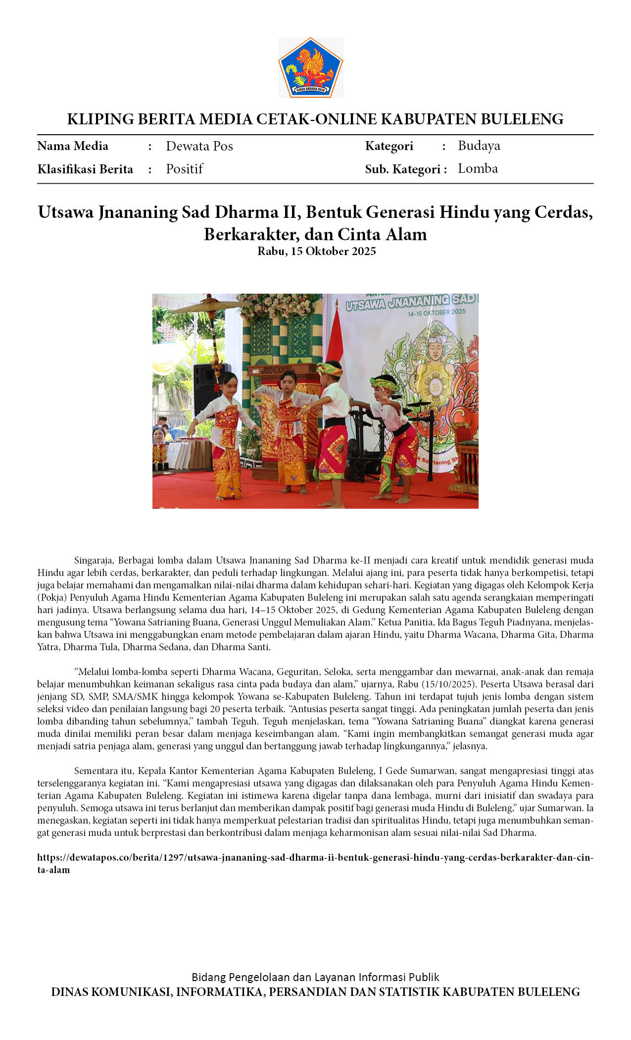 UTSAWA JNANANING SAD DHARMA II, BENTUK GENERASI HINDU YANG CERDAS, BERKARAKTER, DAN CINTA ALAM