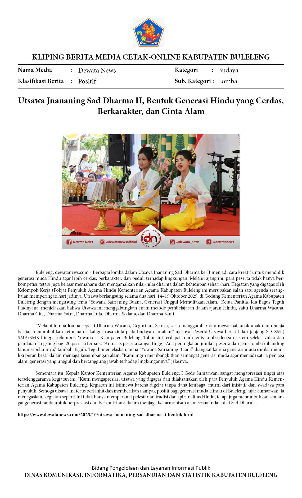 UTSAWA JNANANING SAD DHARMA II, BENTUK GENERASI HINDU YANG CERDAS, BERKARAKTER, DAN CINTA ALAM