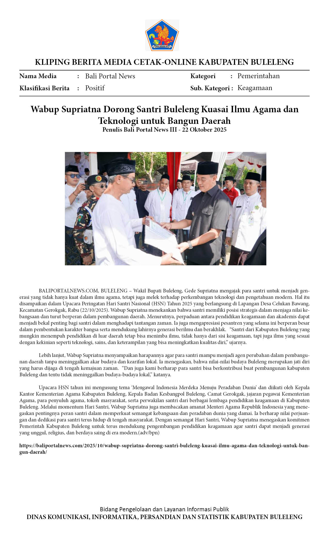Wabup Supriatna Dorong Santri Buleleng Kuasai Ilmu Agama dan Teknologi untuk Bangun Daerah