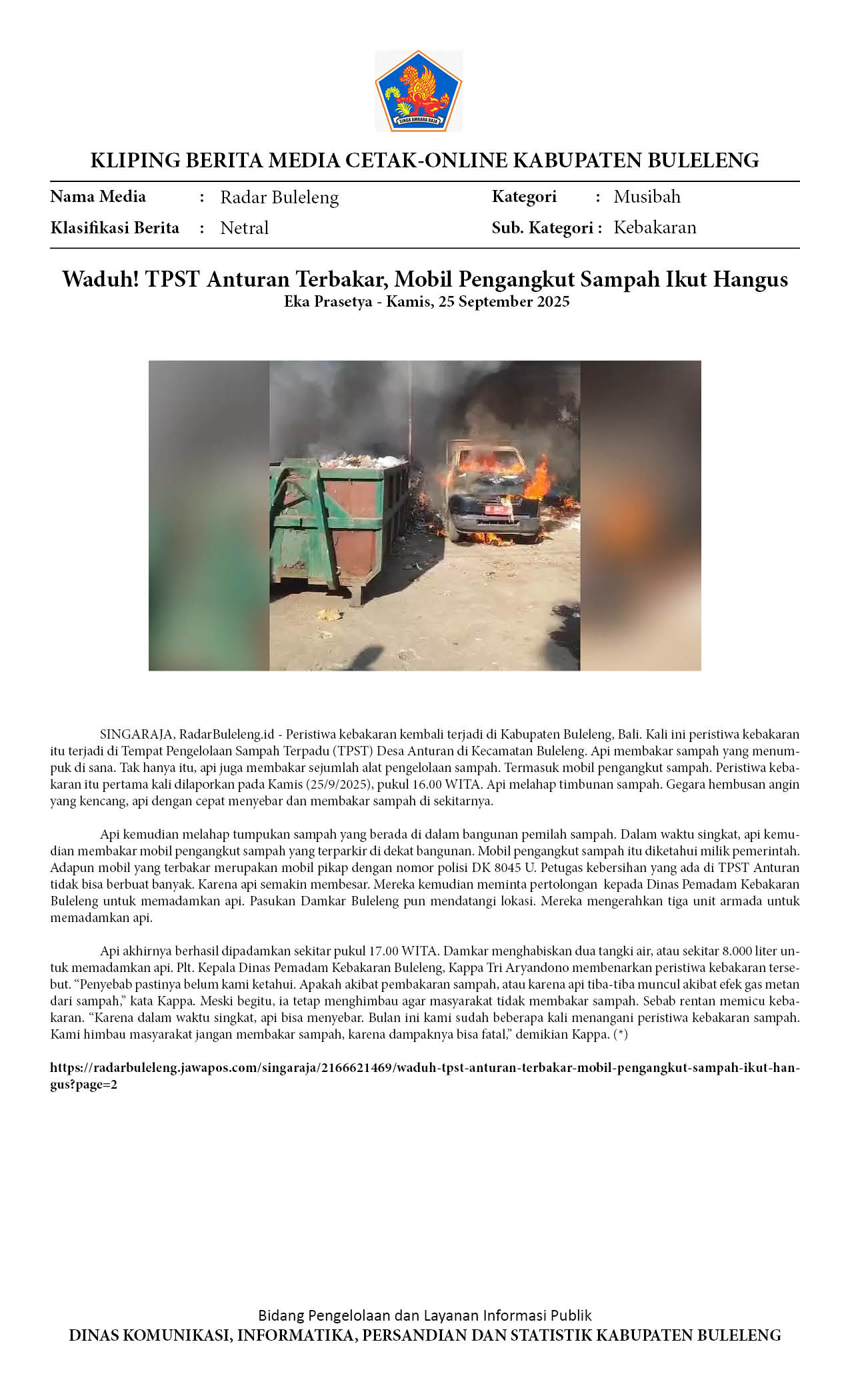 Waduh! TPST Anturan Terbakar, Mobil Pengangkut Sampah Ikut Hangus