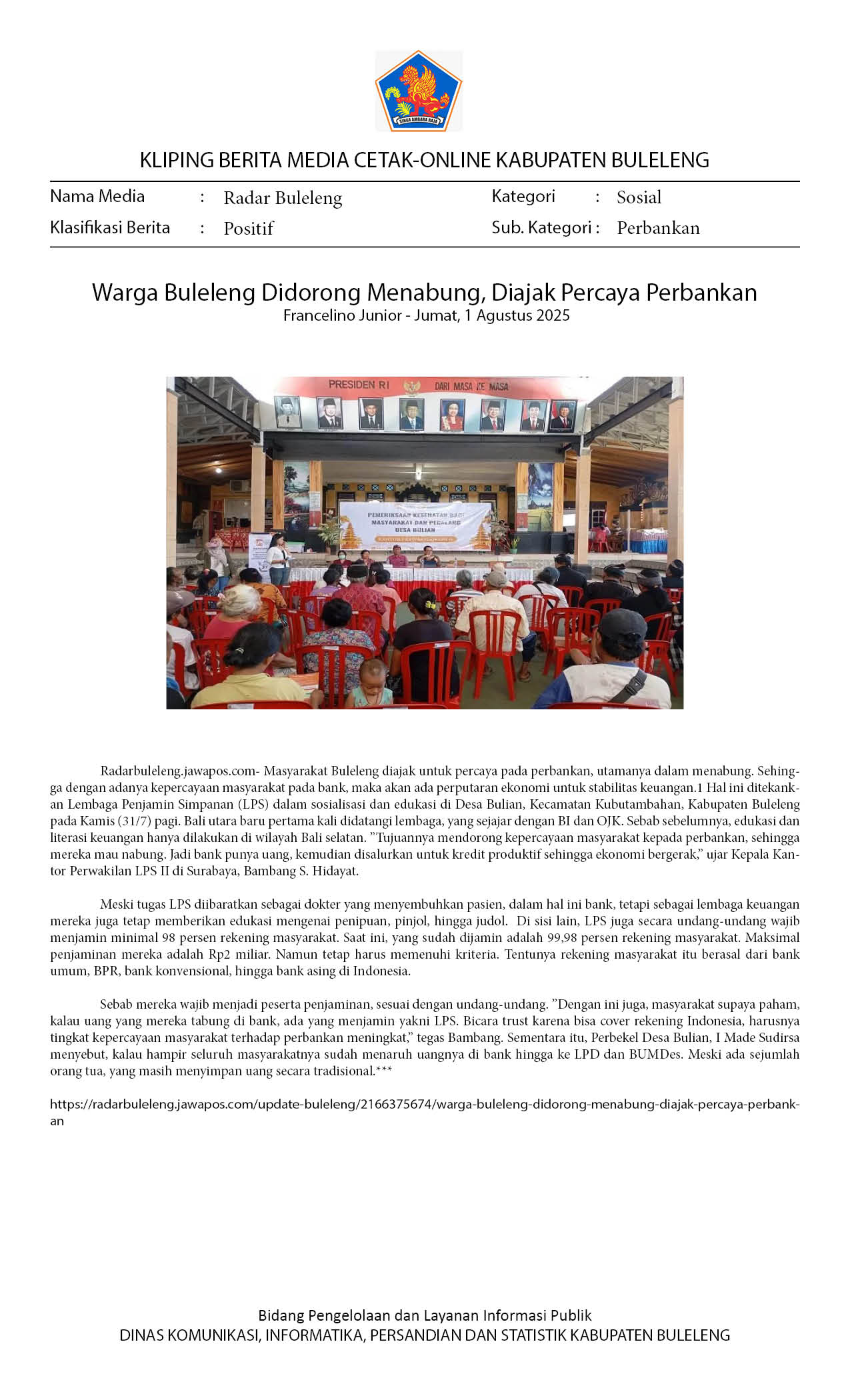 Warga Buleleng Didorong Menabung, Diajak Percaya Perbankan