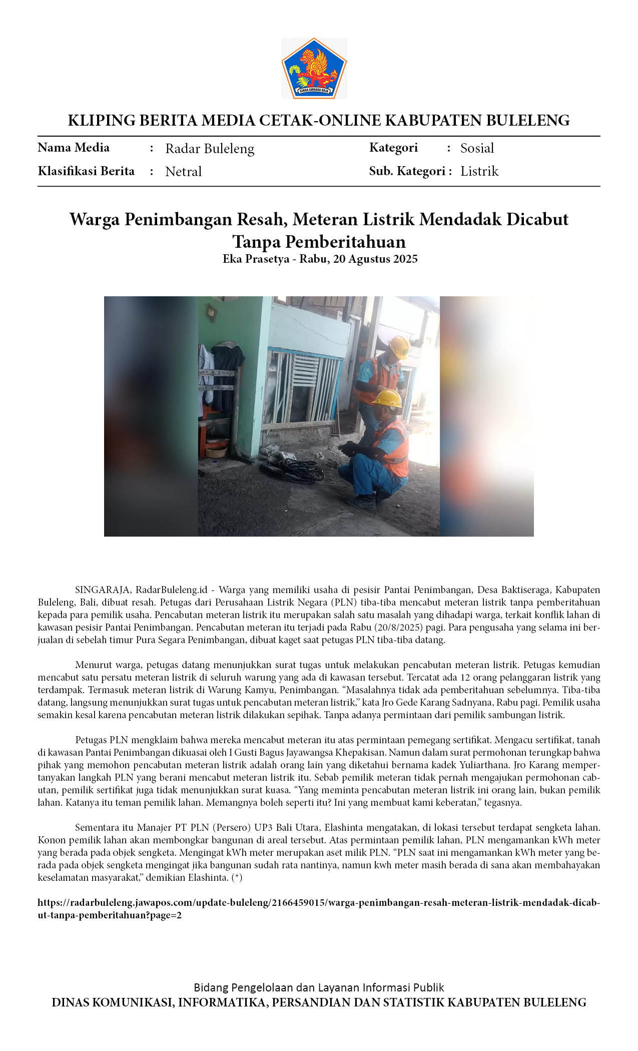 WARGA PENIMBANGAN RESAH, METERAN LISTRIK MENDADAK DICABUT TANPA PEMBERITAHUAN