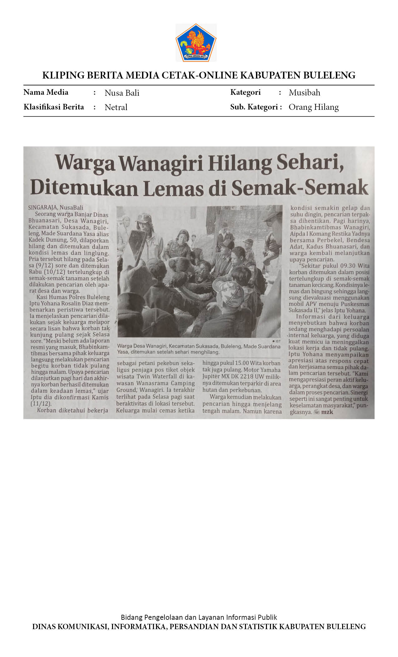 Warga Wanagiri Hilang Sehari, Ditemukan Lemas di Semak-semak