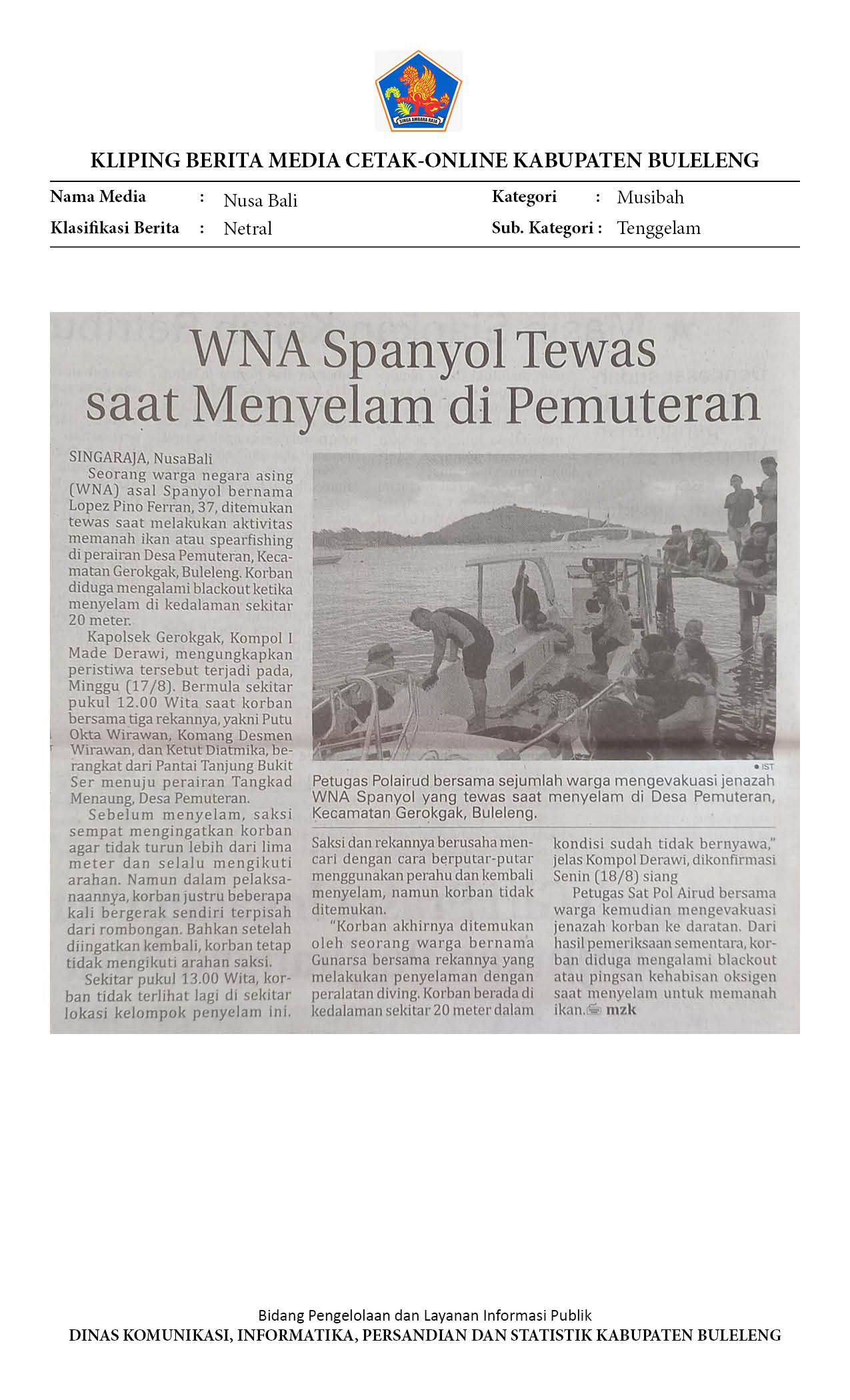WNA Spanyol Tewas saat Menyelam di Pemuteran