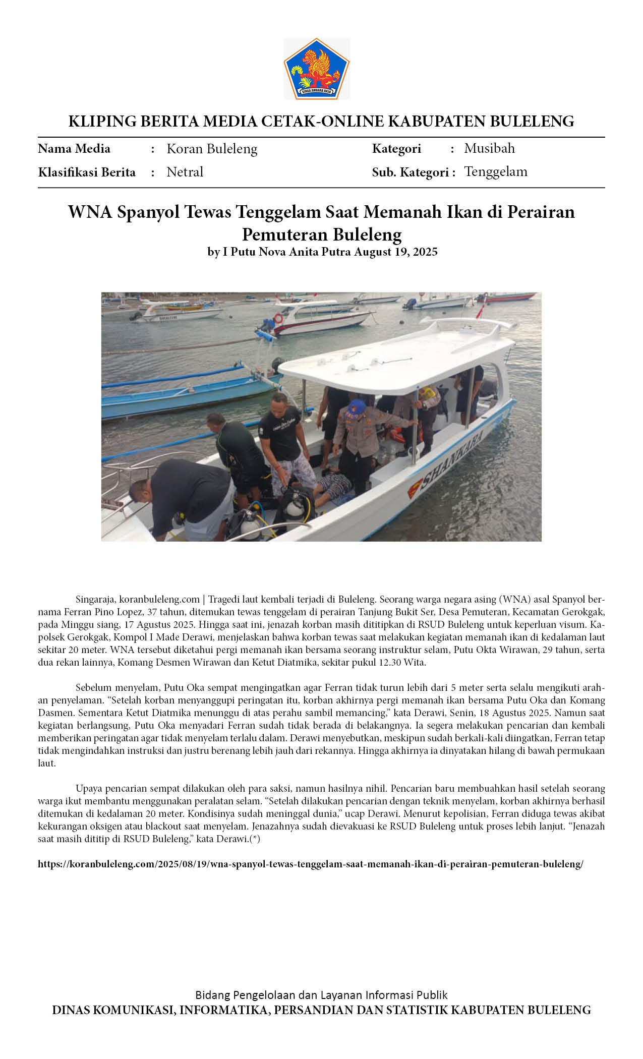WNA SPANYOL TEWAS TENGGELAM SAAT MEMANAH IKAN DI PERAIRAN PEMUTERAN BULELENG