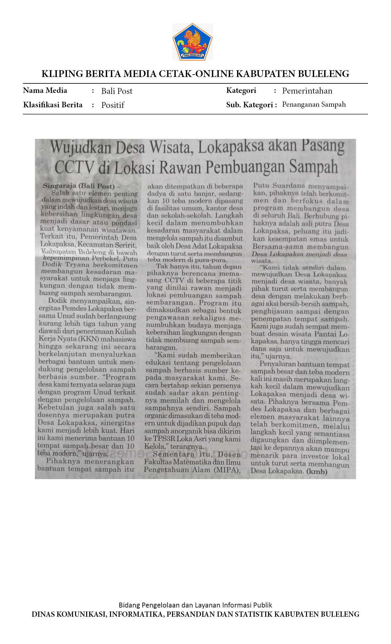 WUJUDKAN DESA WISATA, LOKAPAKSA AKAN PASANG CCTV DI LOKASI RAWAN PEMBUANGAN SAMPAH