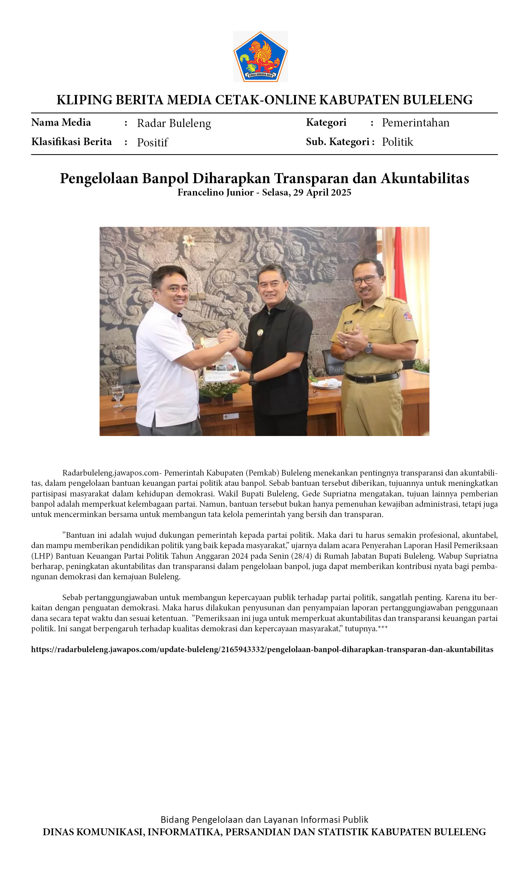 Kliping Kategori Pemerintahan Edisi 30 April 2025