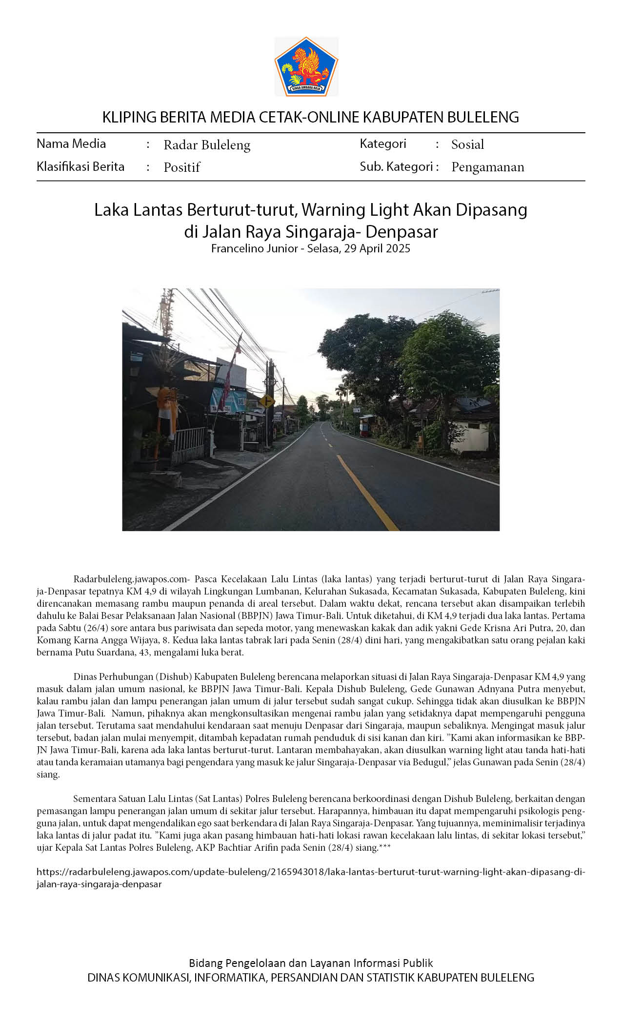 JALUR SUKASADA RAWAN KECELAKAAN, POLISI MINTA TAMBAH LPJU