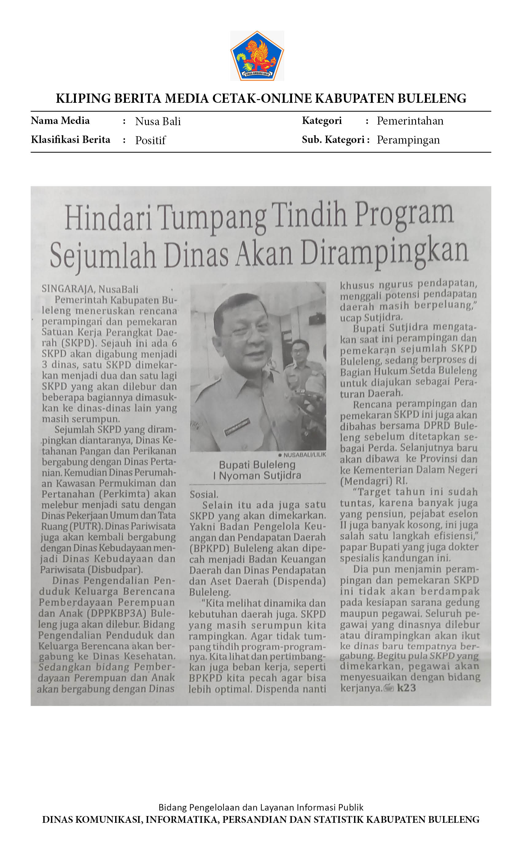 EFISIENSI, BULELENG MERGER SEJUMLAH DINAS