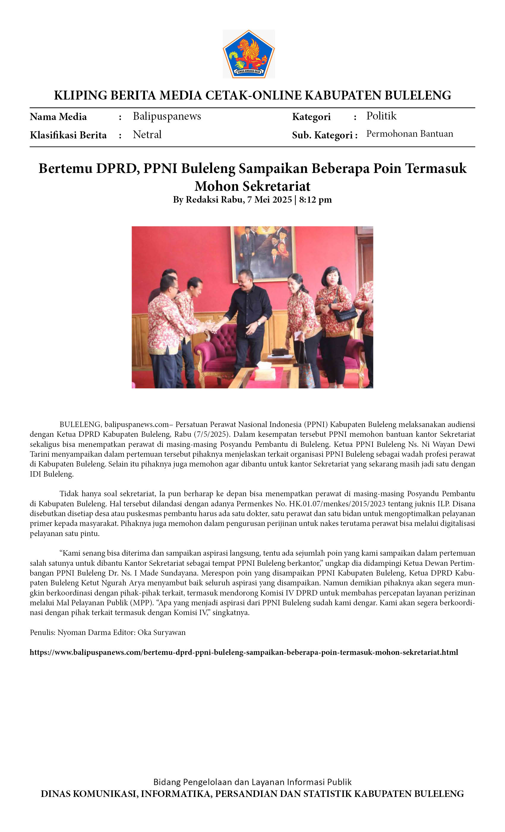 BAHAS KANTOR SEKRETARIAT DAN PENEMPATAN PERAWAT DI POSYANDU, PPNI JAJAGI DEWAN BULELENG