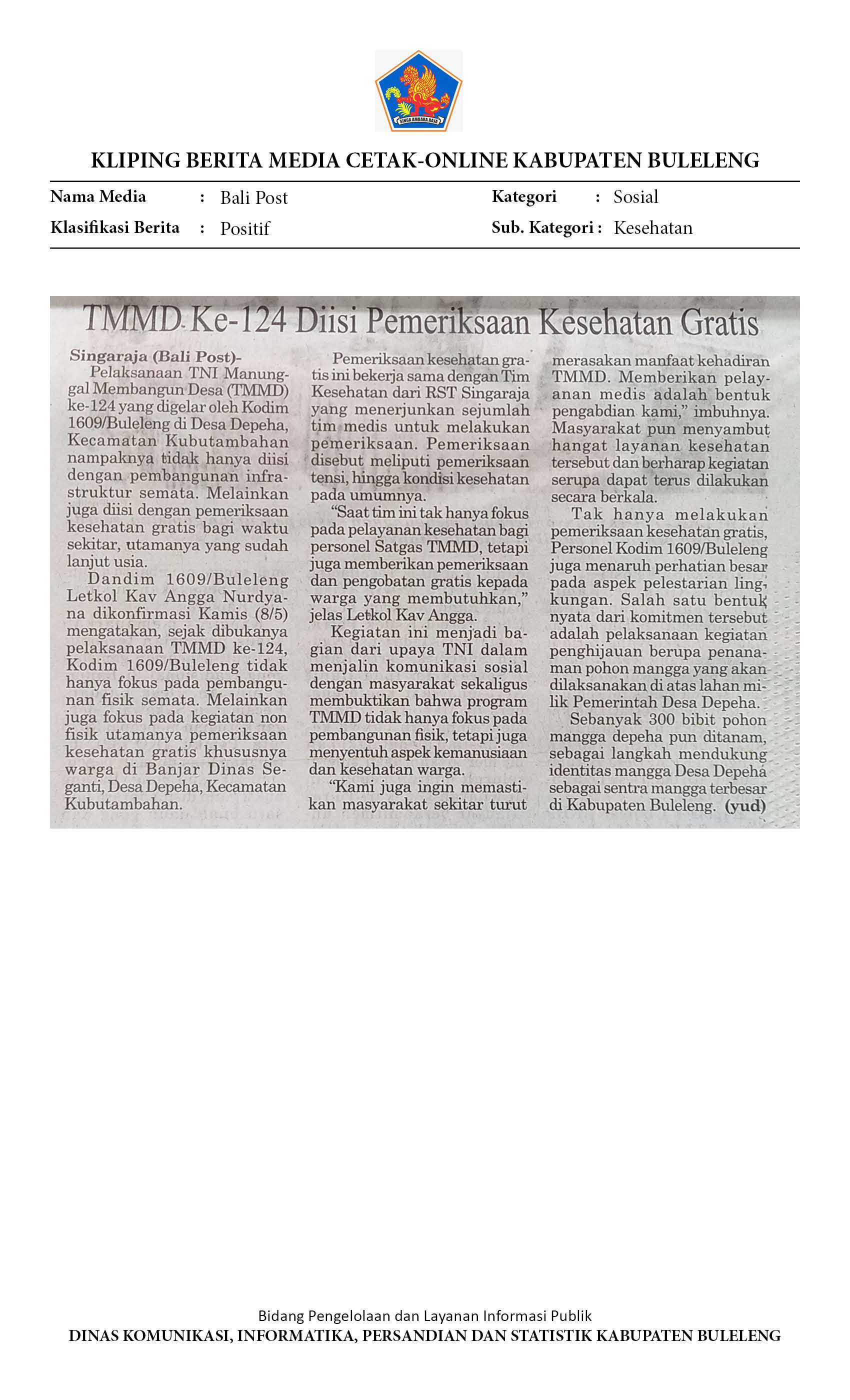 TMMD KE-124 DIISI PEMERIKSAAN KESEHATAN GRATIS