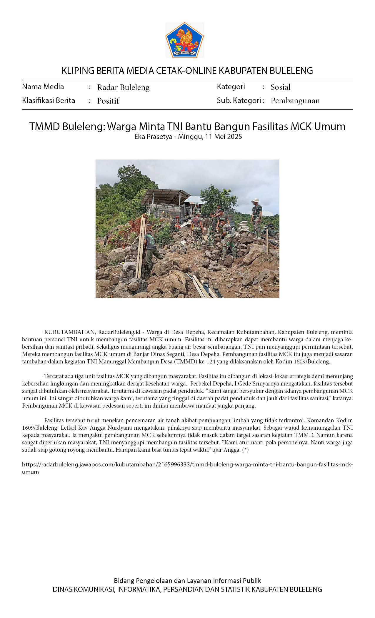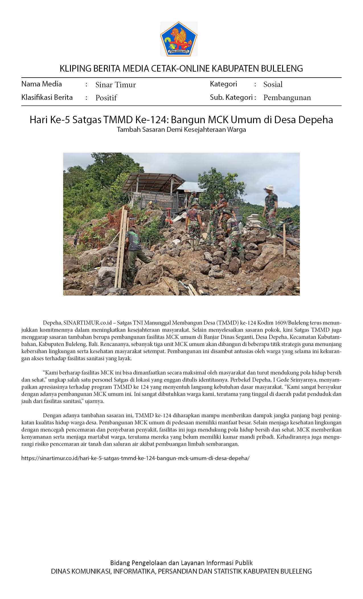 TMMD BULELENG: WARGA MINTA TNI BANTU BANGUN FASILITAS MCK UMUM