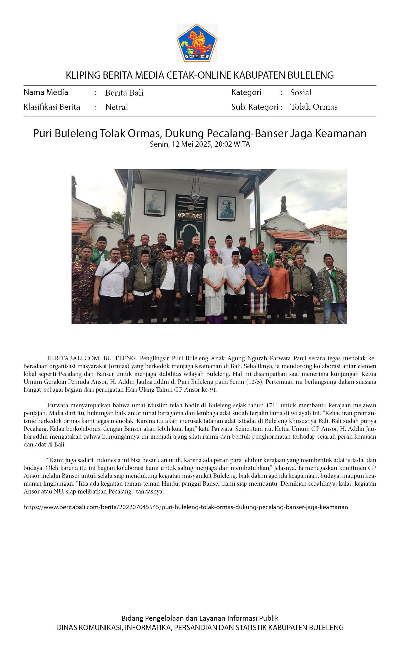 PURI BULELENG TOLAK ORMAS, DUKUNG PECALANG-BANSER JAGA KEAMANAN