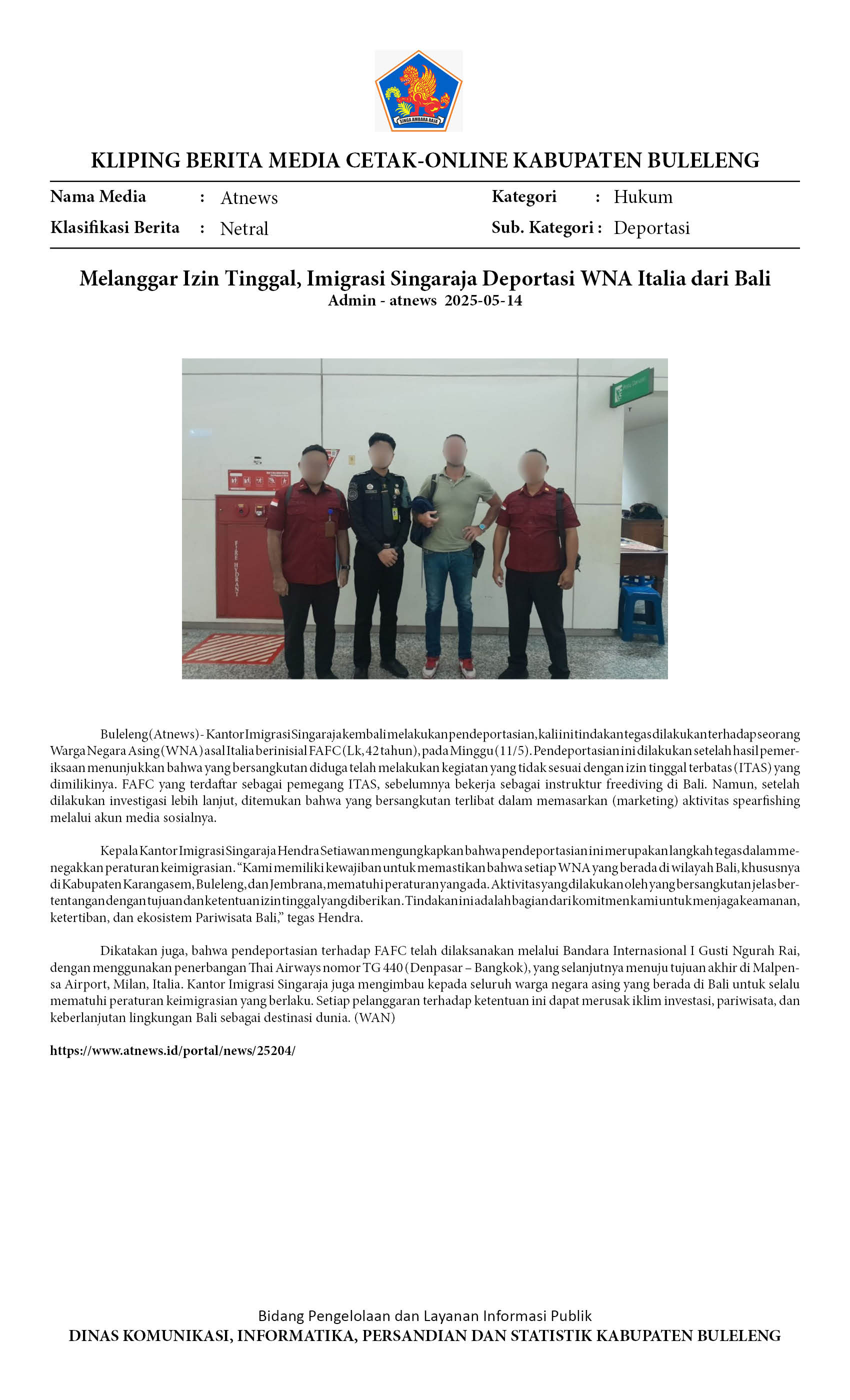 IMIGRASI SINGARAJA DEPORTASI WNA ITALIA
