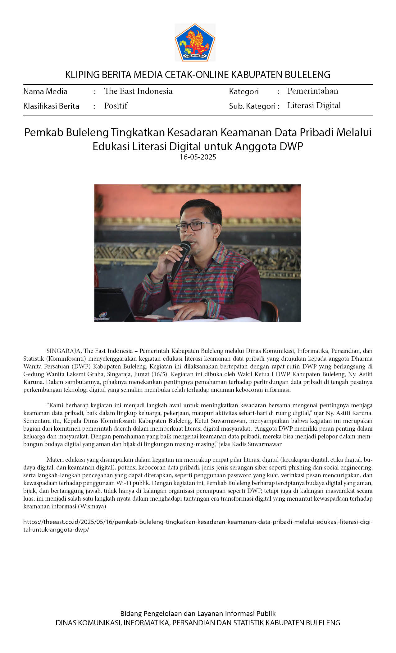 PEMKAB BULELENG TINGKATKAN KESADARAN KEAMANAN DATA PRIBADI MELALUI EDUKASI LITERASI DIGITAL UNTUK ANGGOTA DWP