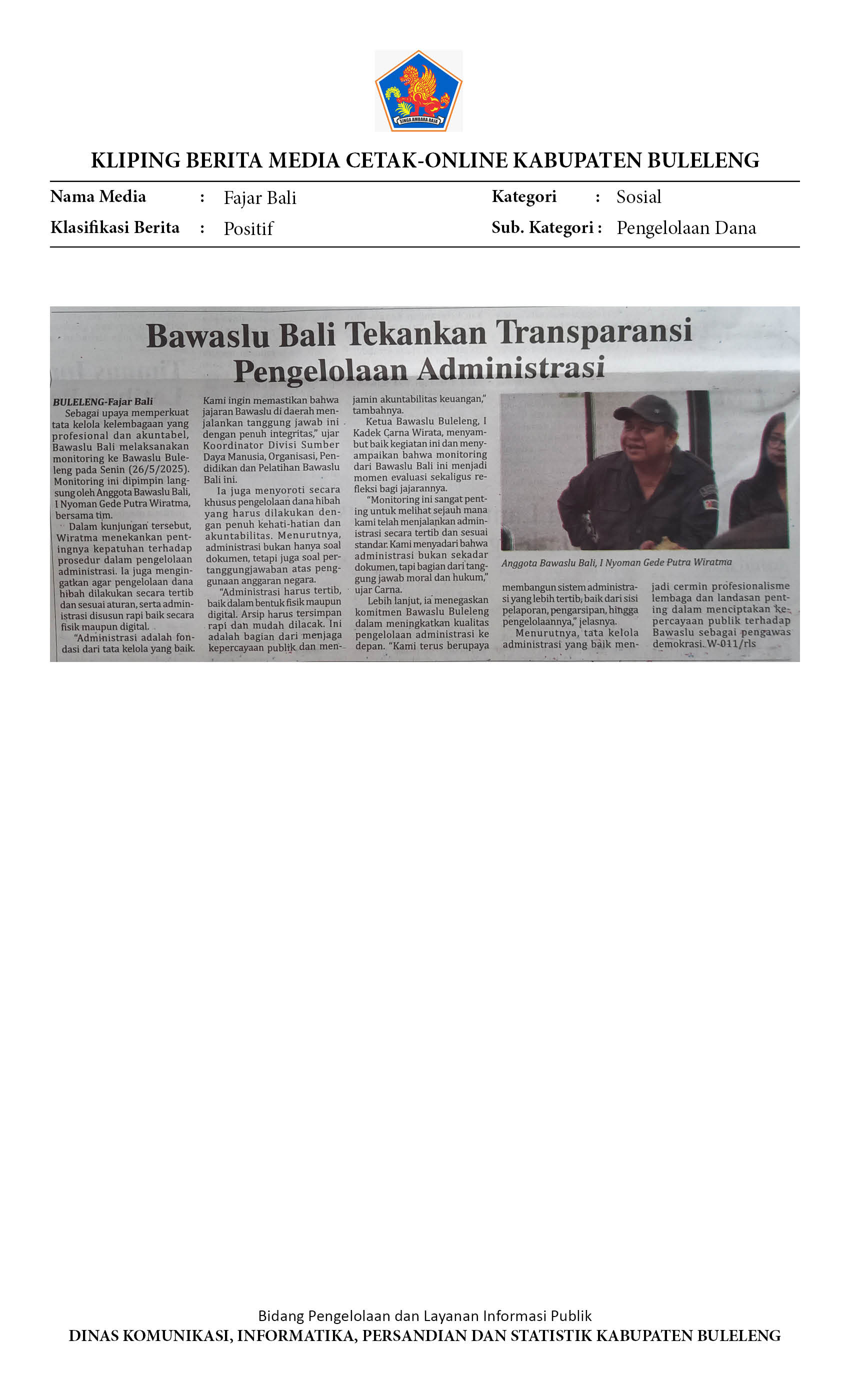 BAWASLU BALI TEKANKAN TRANSPARANSI PENGELOLAAN ADMINISTRASI DI BULELENG