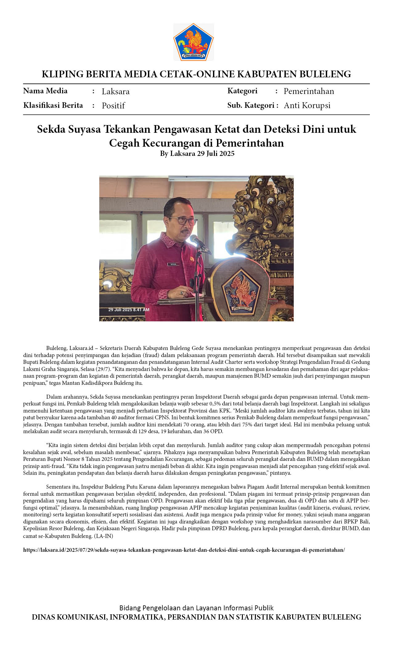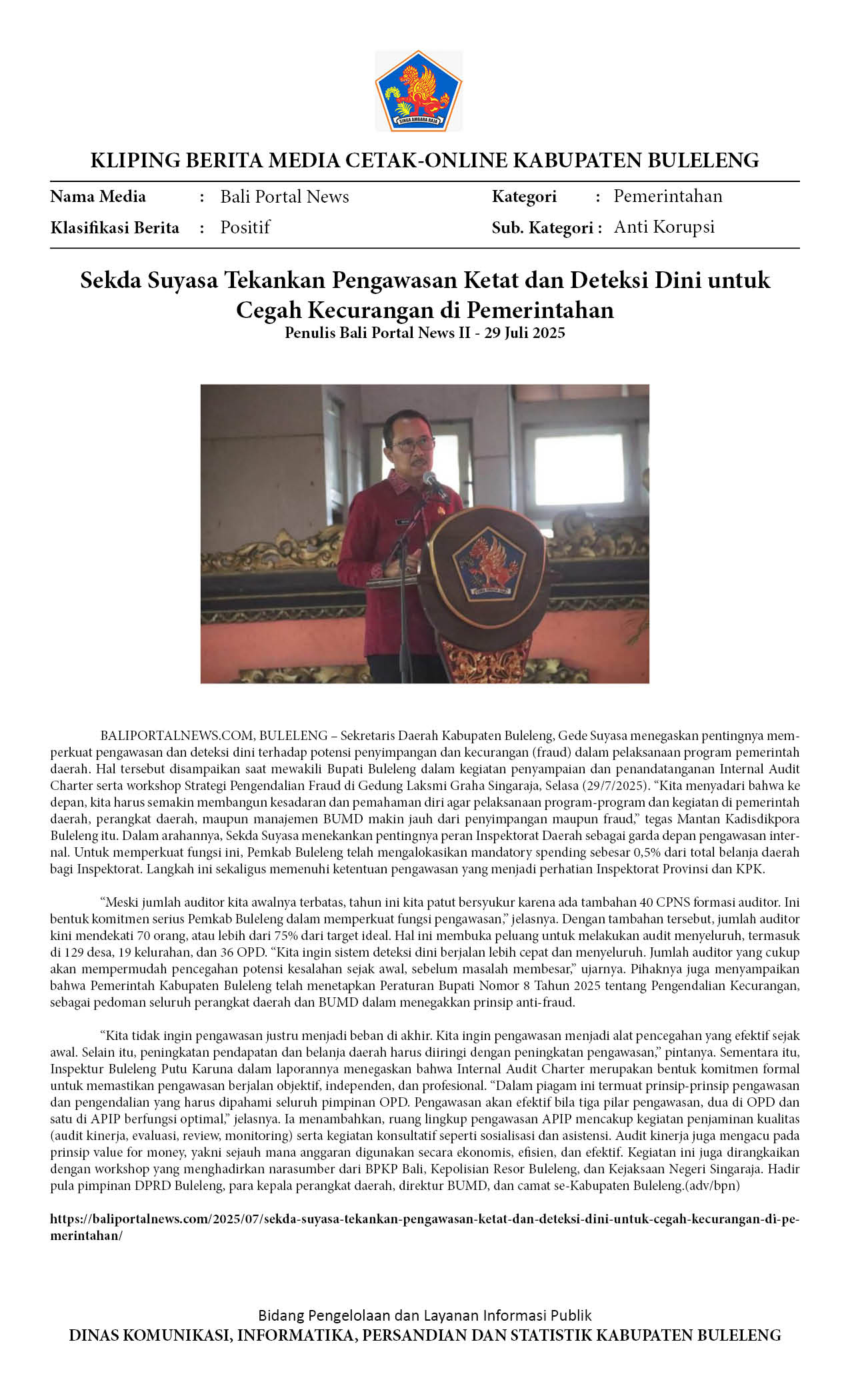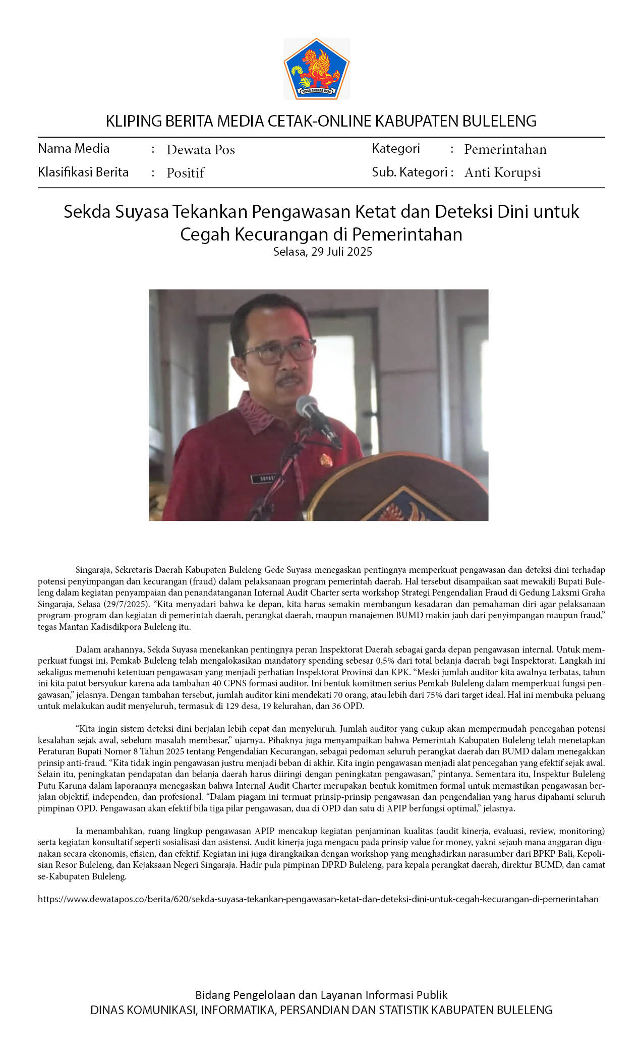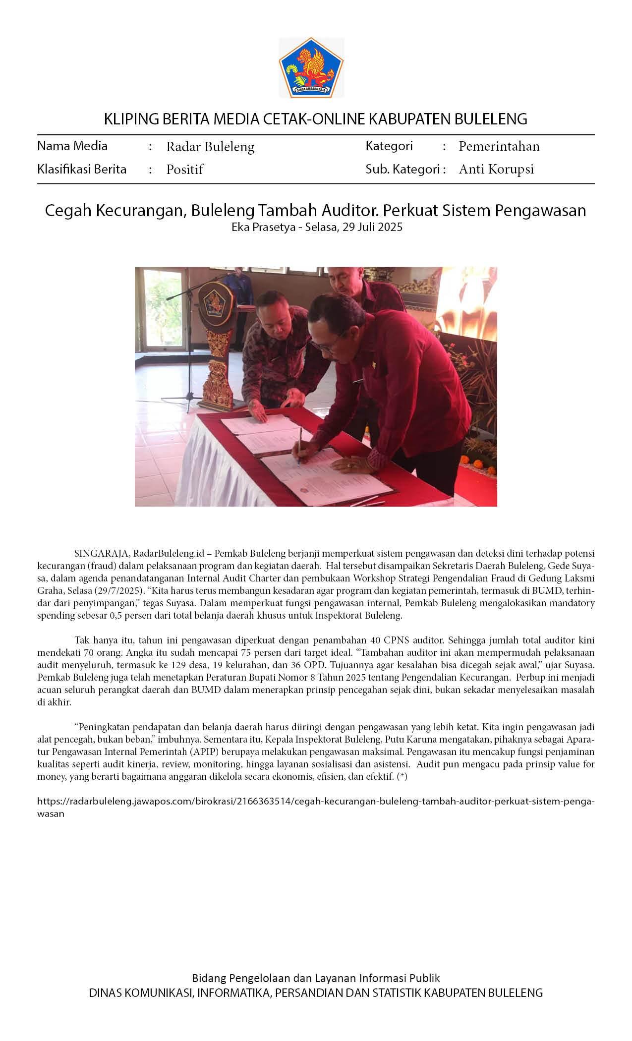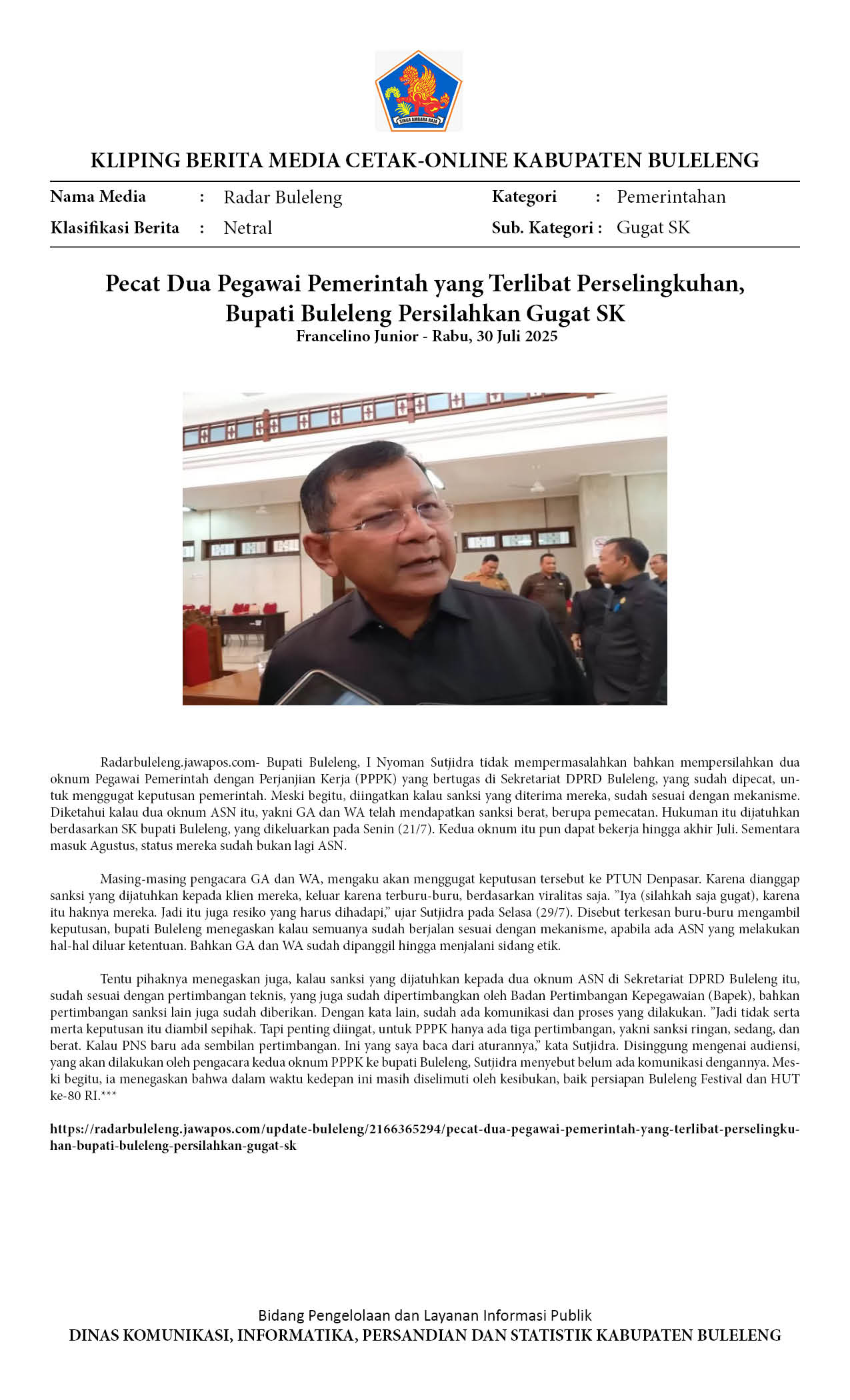 Kliping Kategori Pemerintahan Edisi 30 Juli 2025
