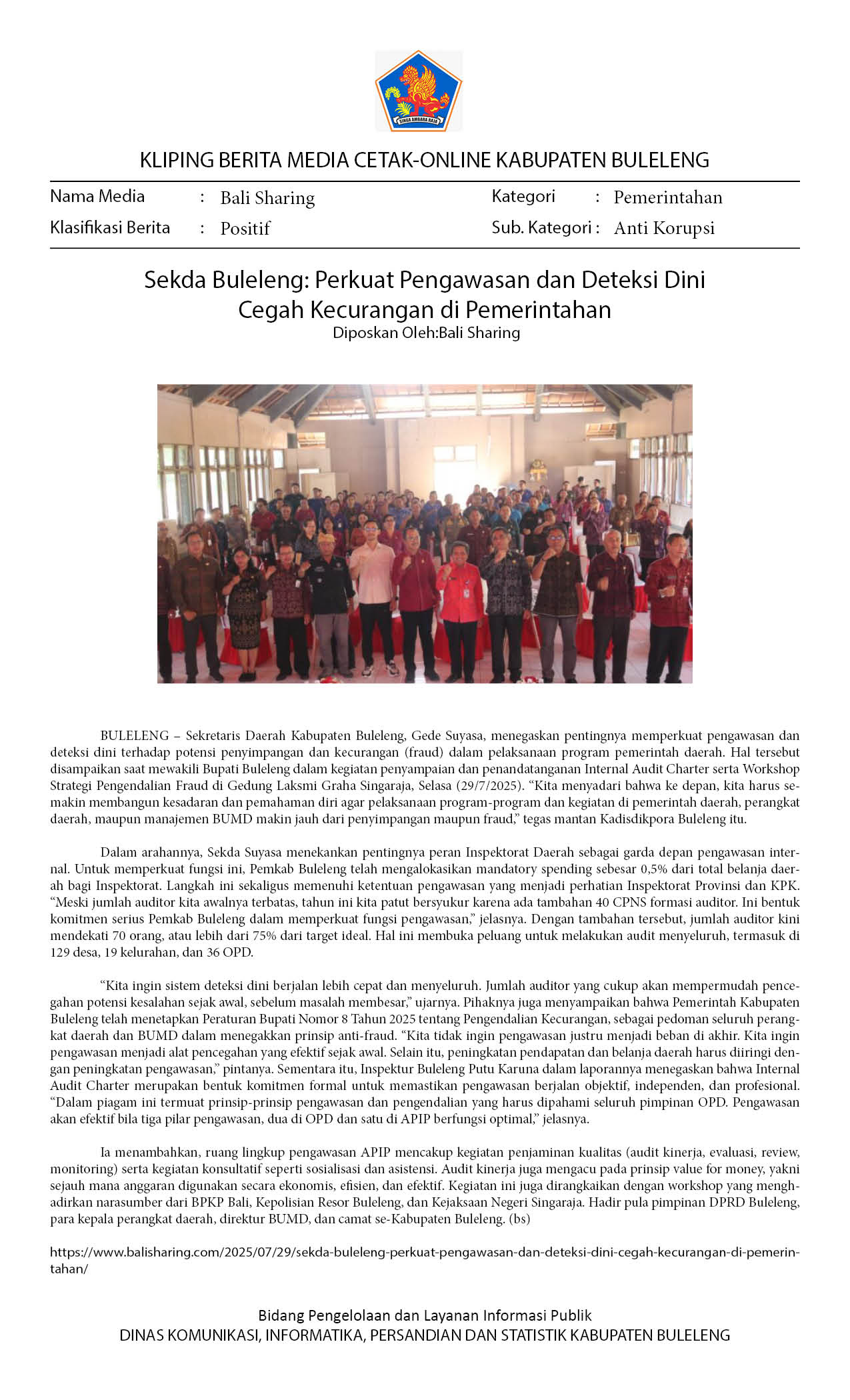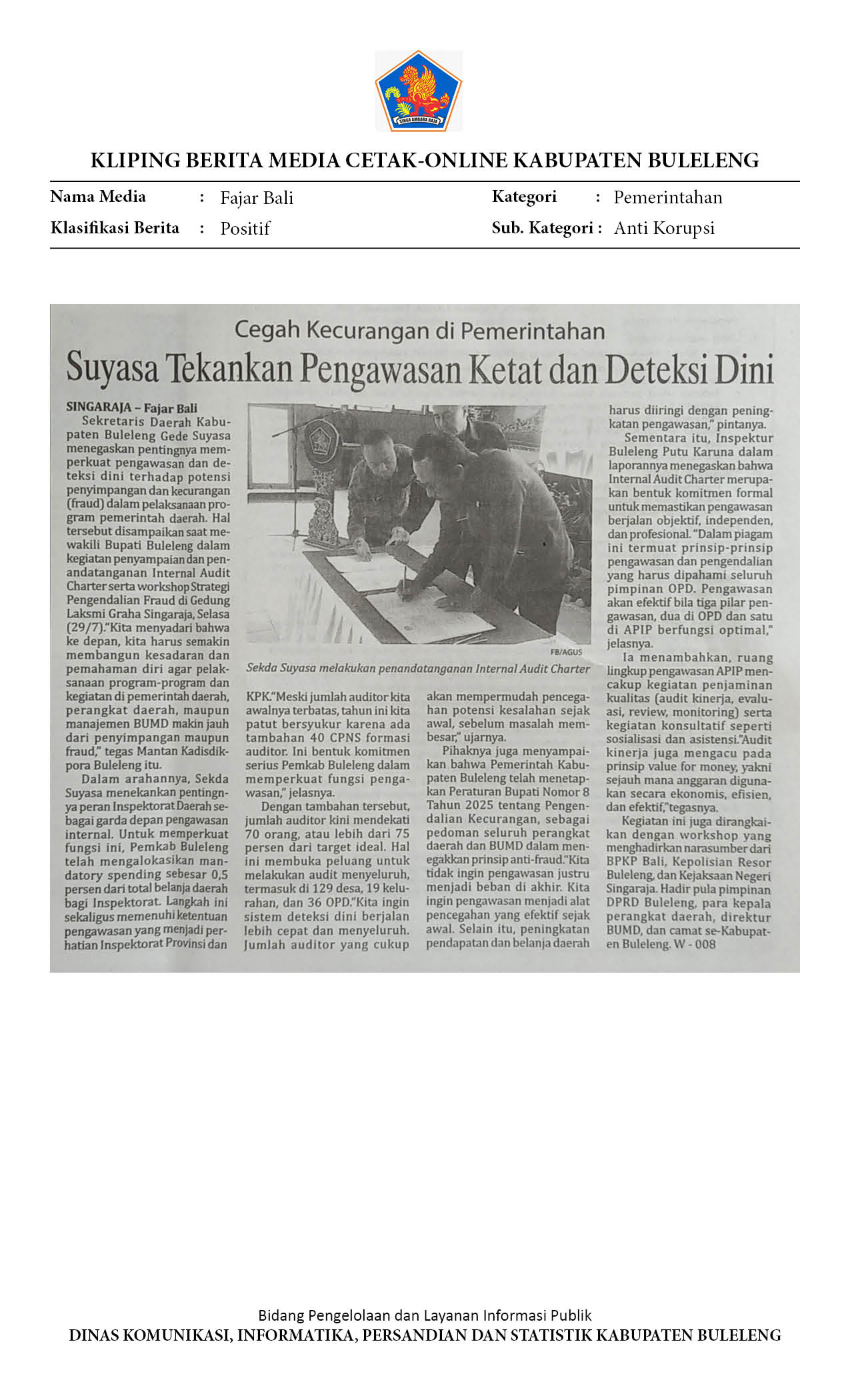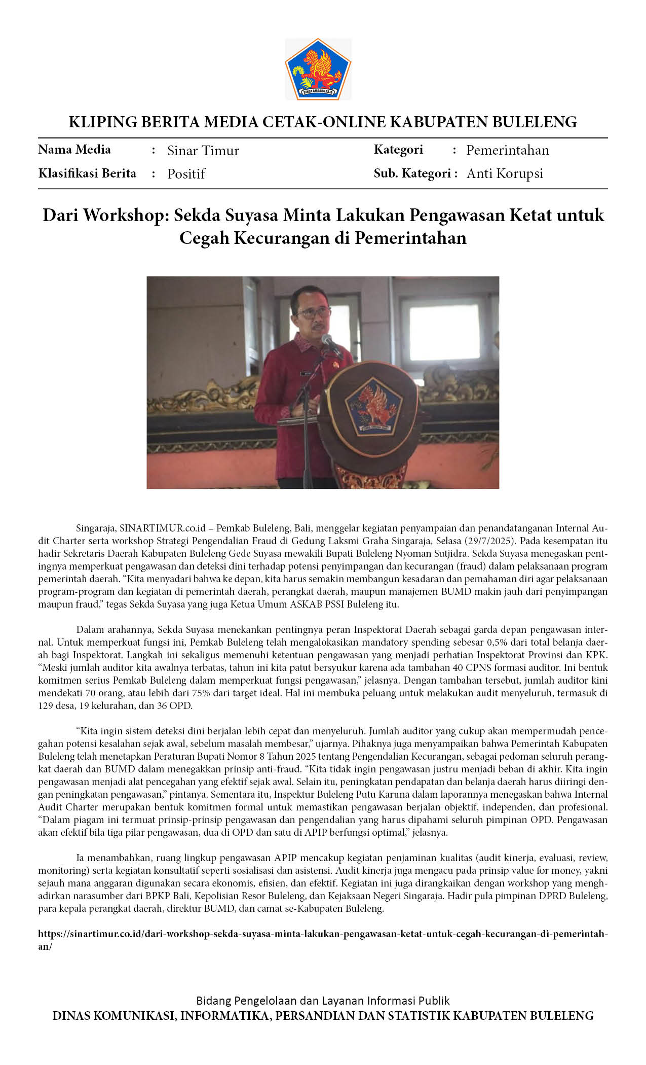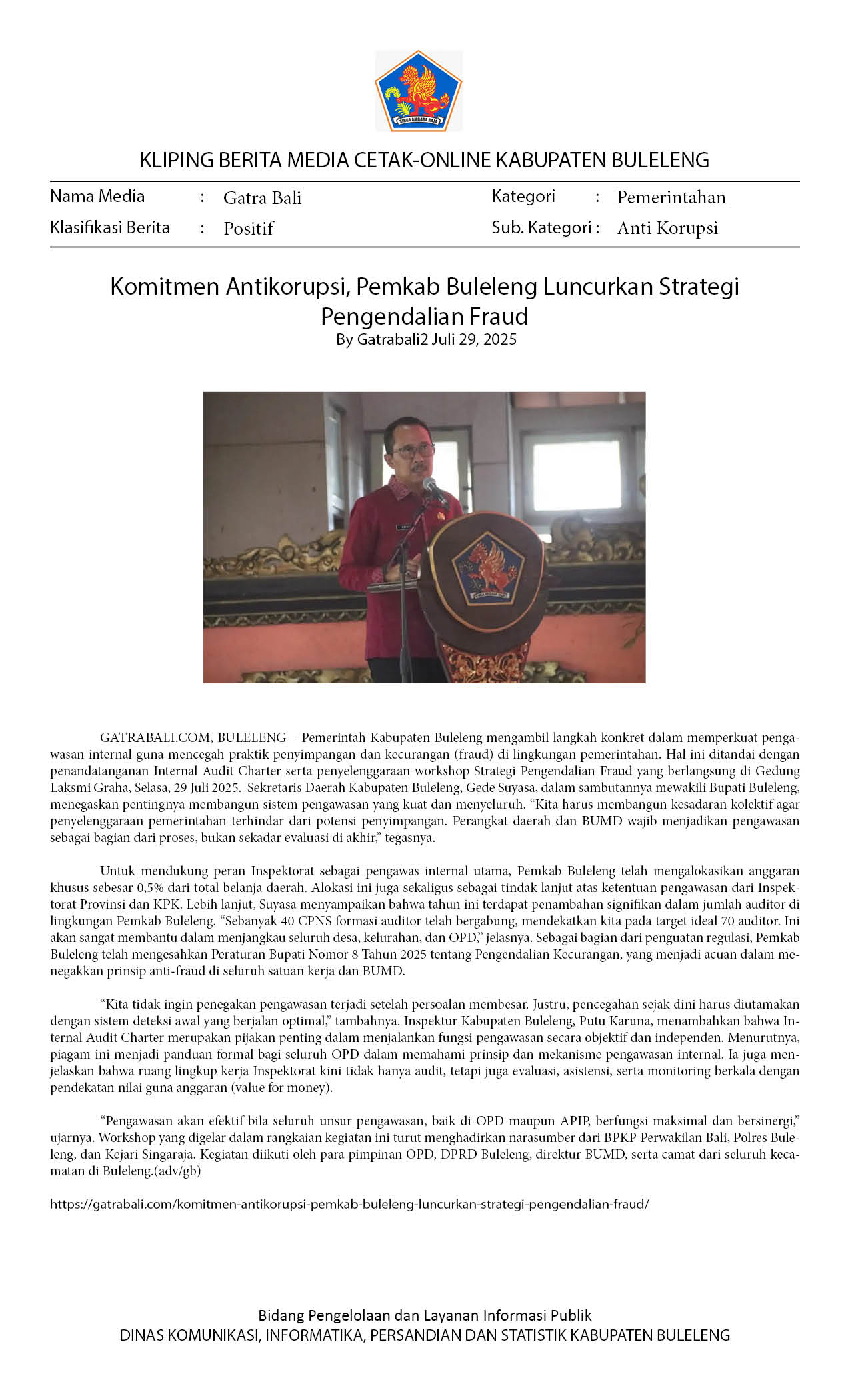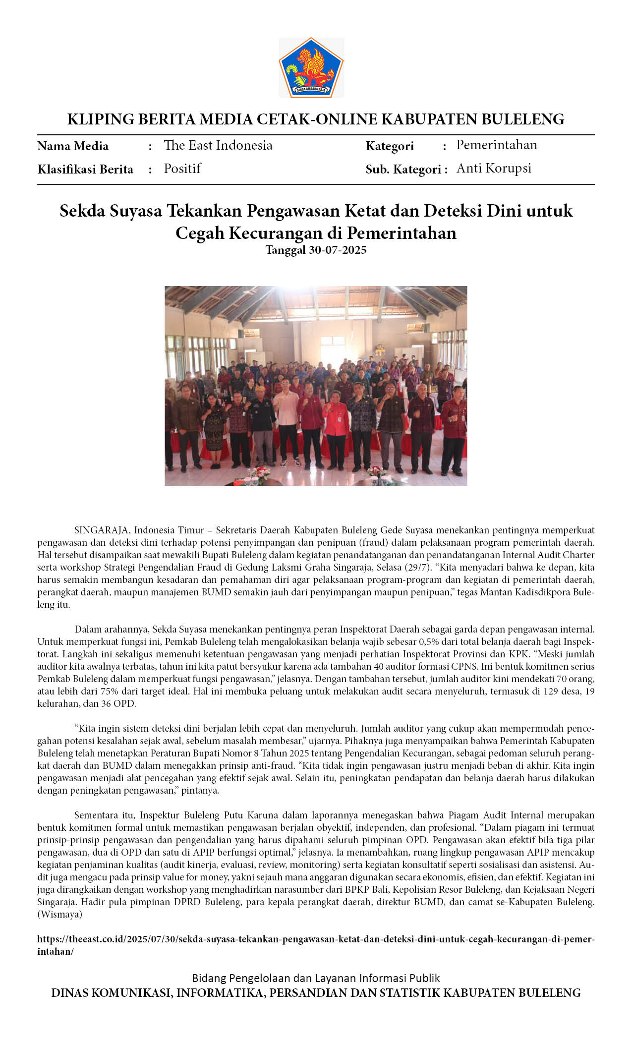 Kliping Kategori Pemerintahan Edisi 30 Juli 2025